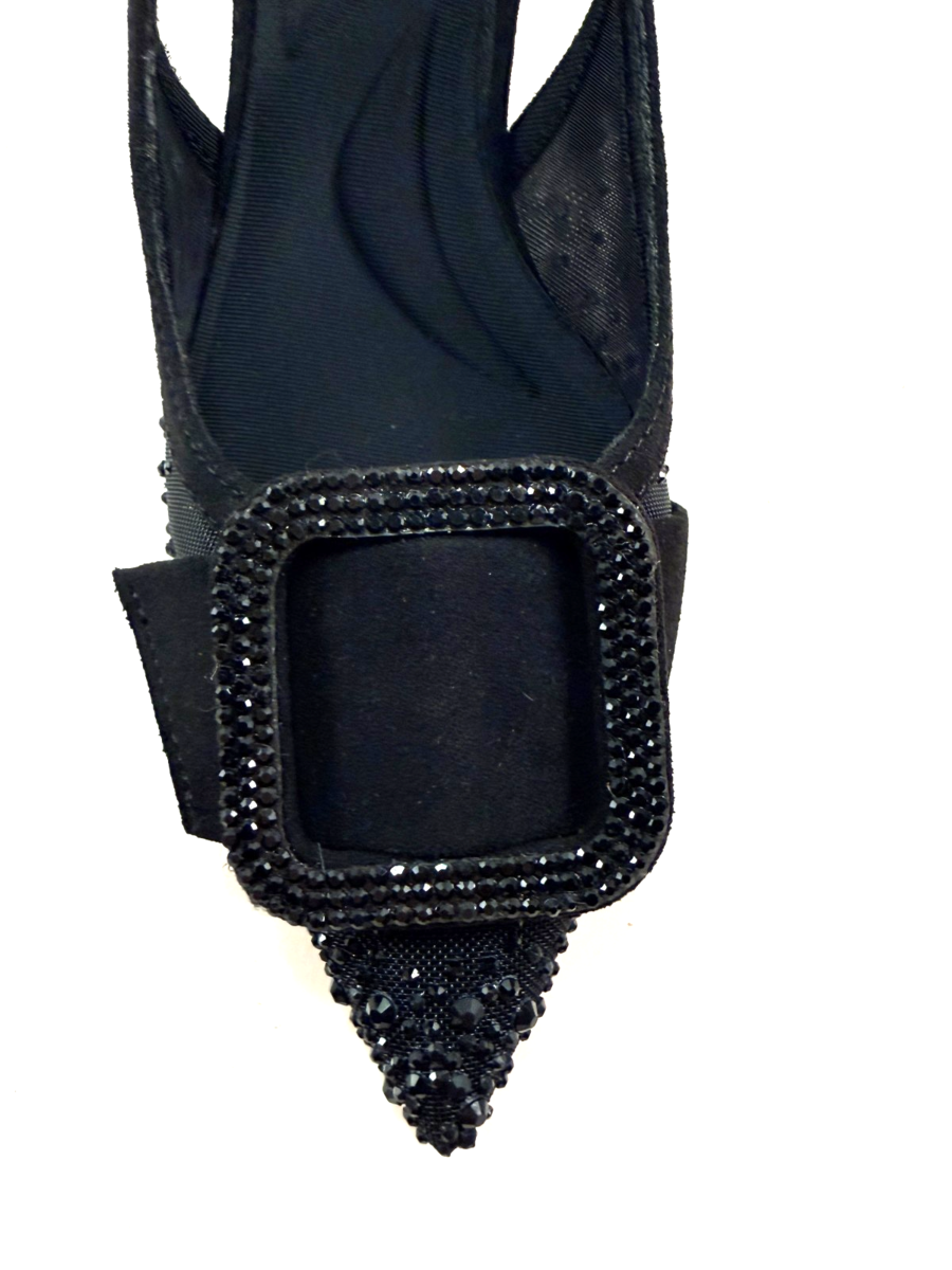 Anne Klein Iflex Ilanna Black Embellished Pointed Toe Slingback Dress Pump