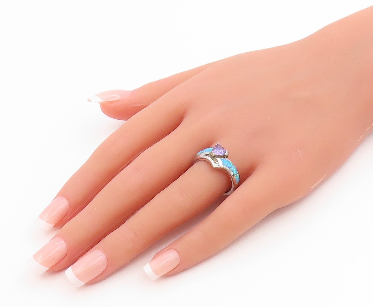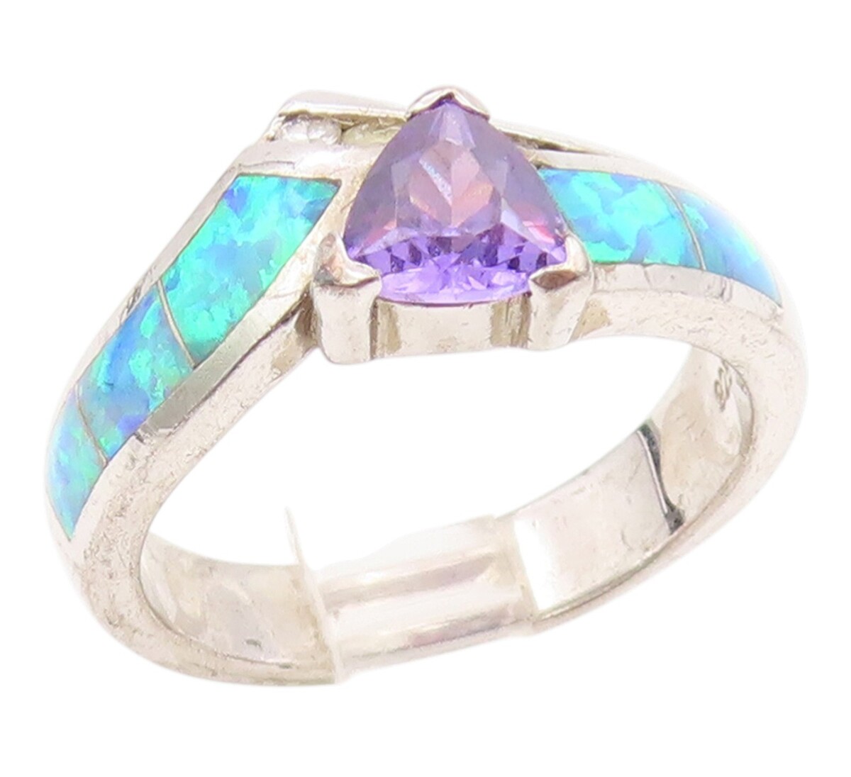 925 Sterling Silver Vintage Ring Elegant Amethyst & Fire Opal Band Sz 8 RG35775