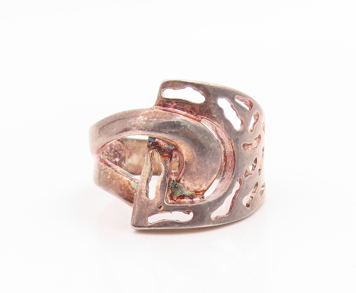 925 Sterling Silver Vintage Ring Intricate Openwork Loop Band Sz 8.5 RG35801