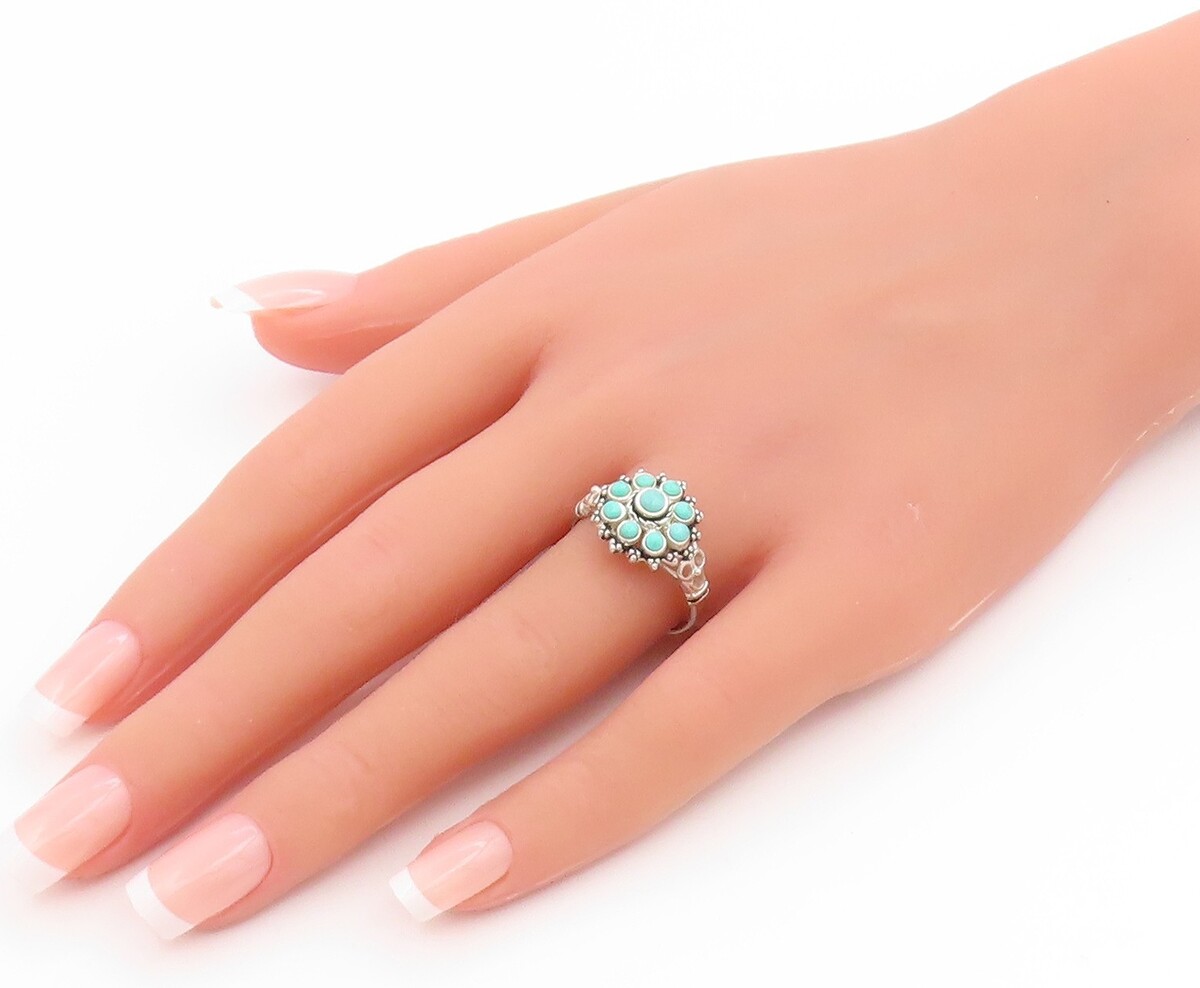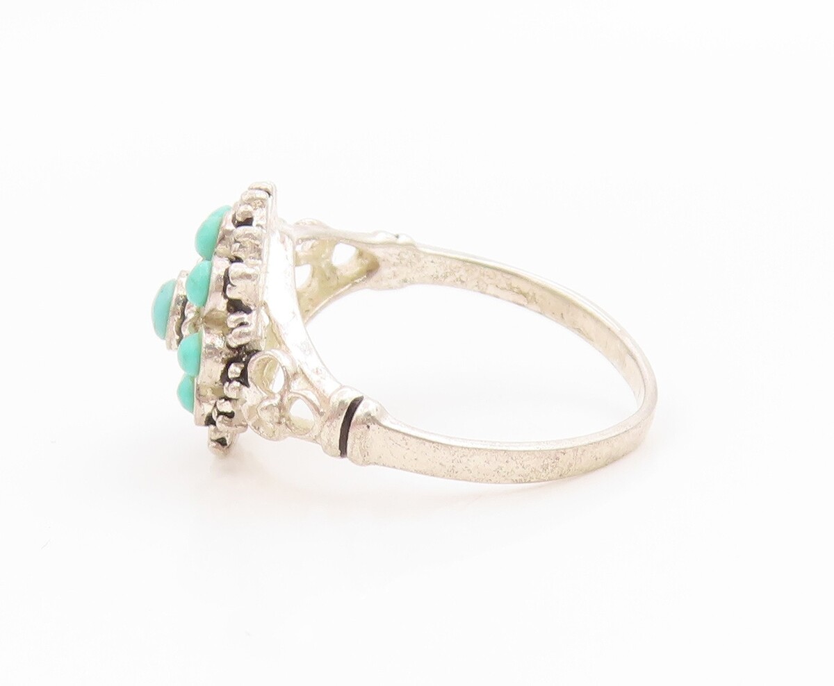 925 Sterling Silver Vintage Ring Classic Turquoise Floral Cluster Sz 9 RG35779