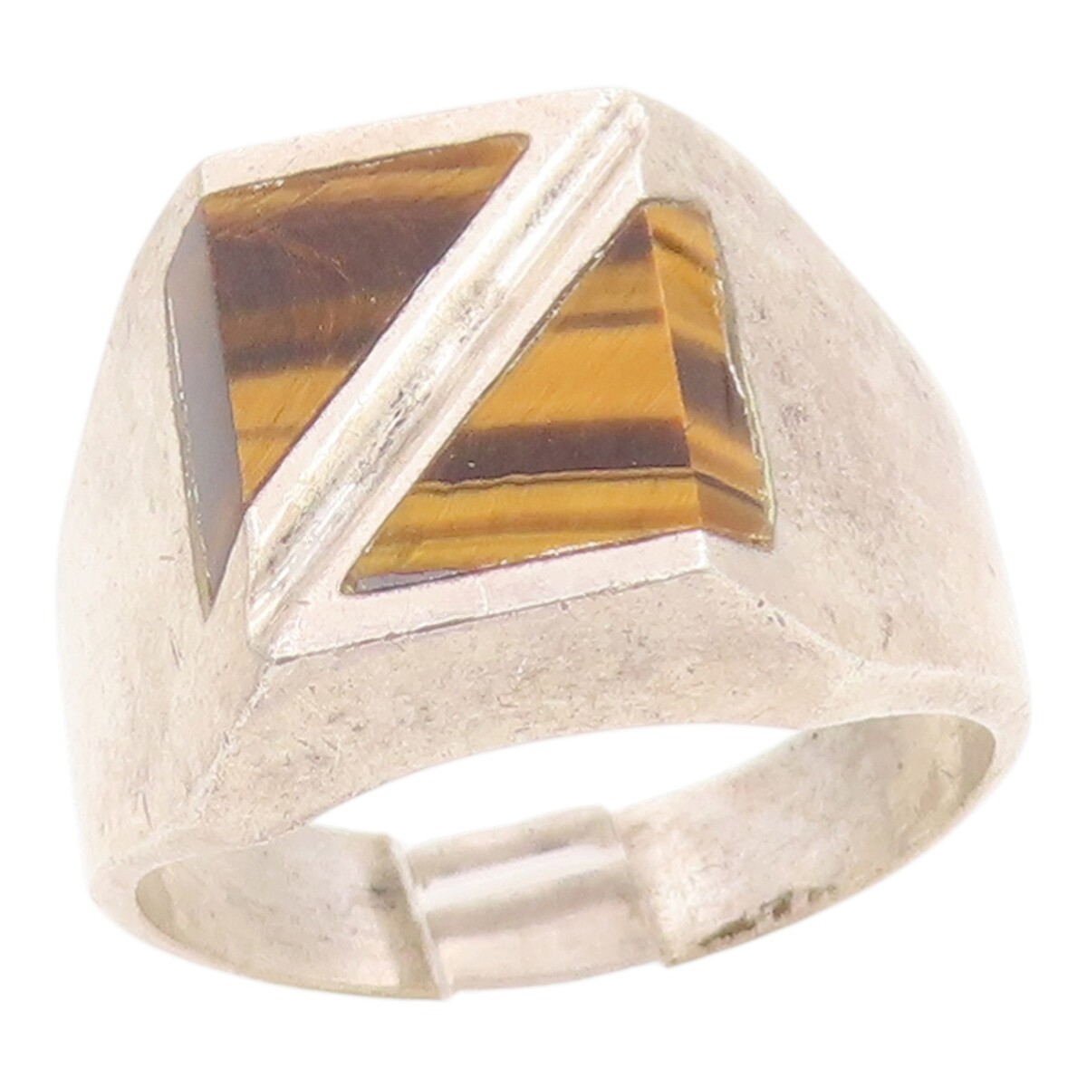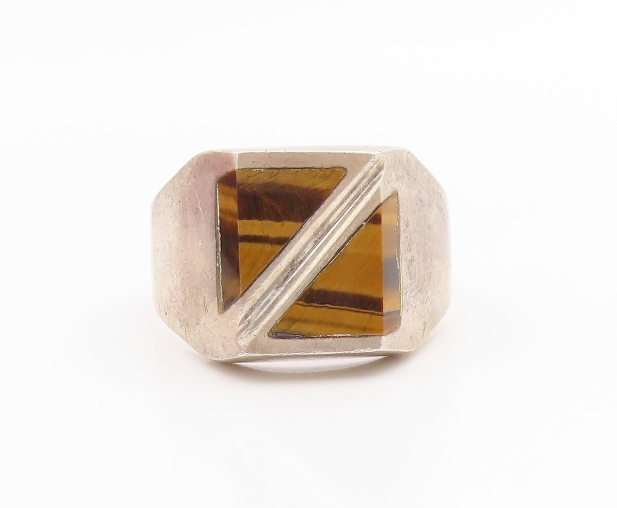 925 Sterling Silver Vintage Ring MEXICO Tiger's Eye Solid Band Sz 13.5 RG35784