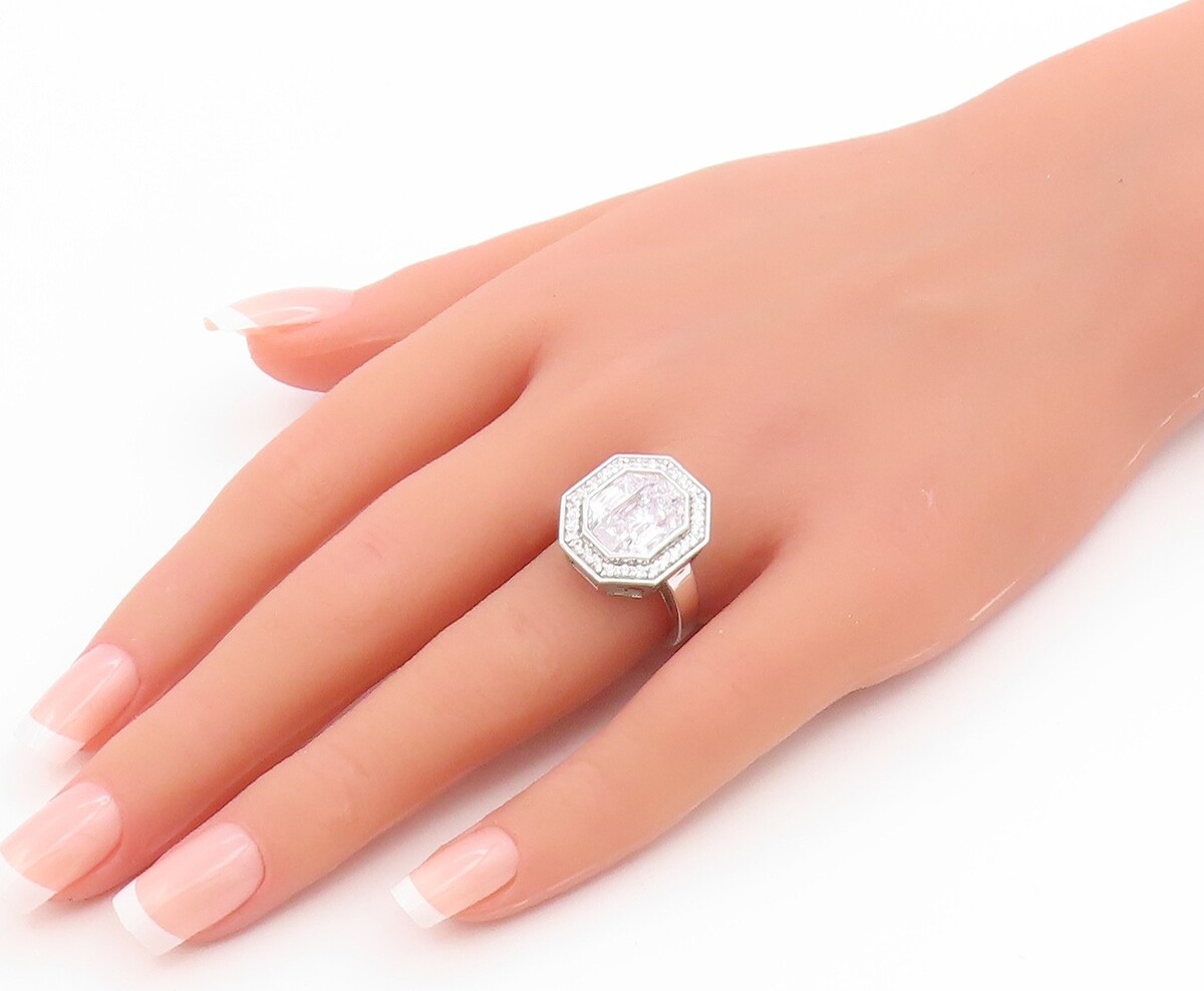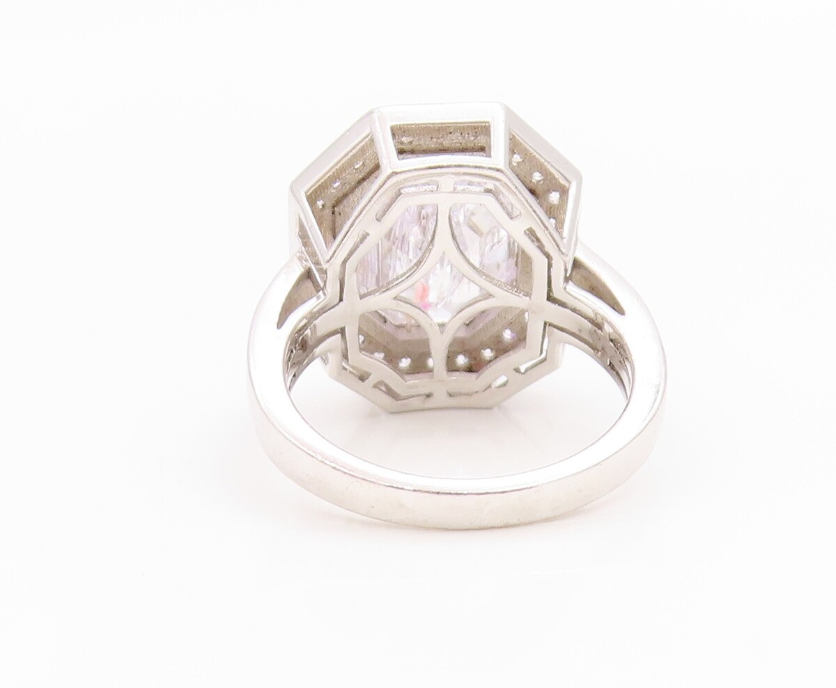 925 Sterling Silver Vintage Ring CZ Halo Geometric Octagon Band Sz 7 RG35769