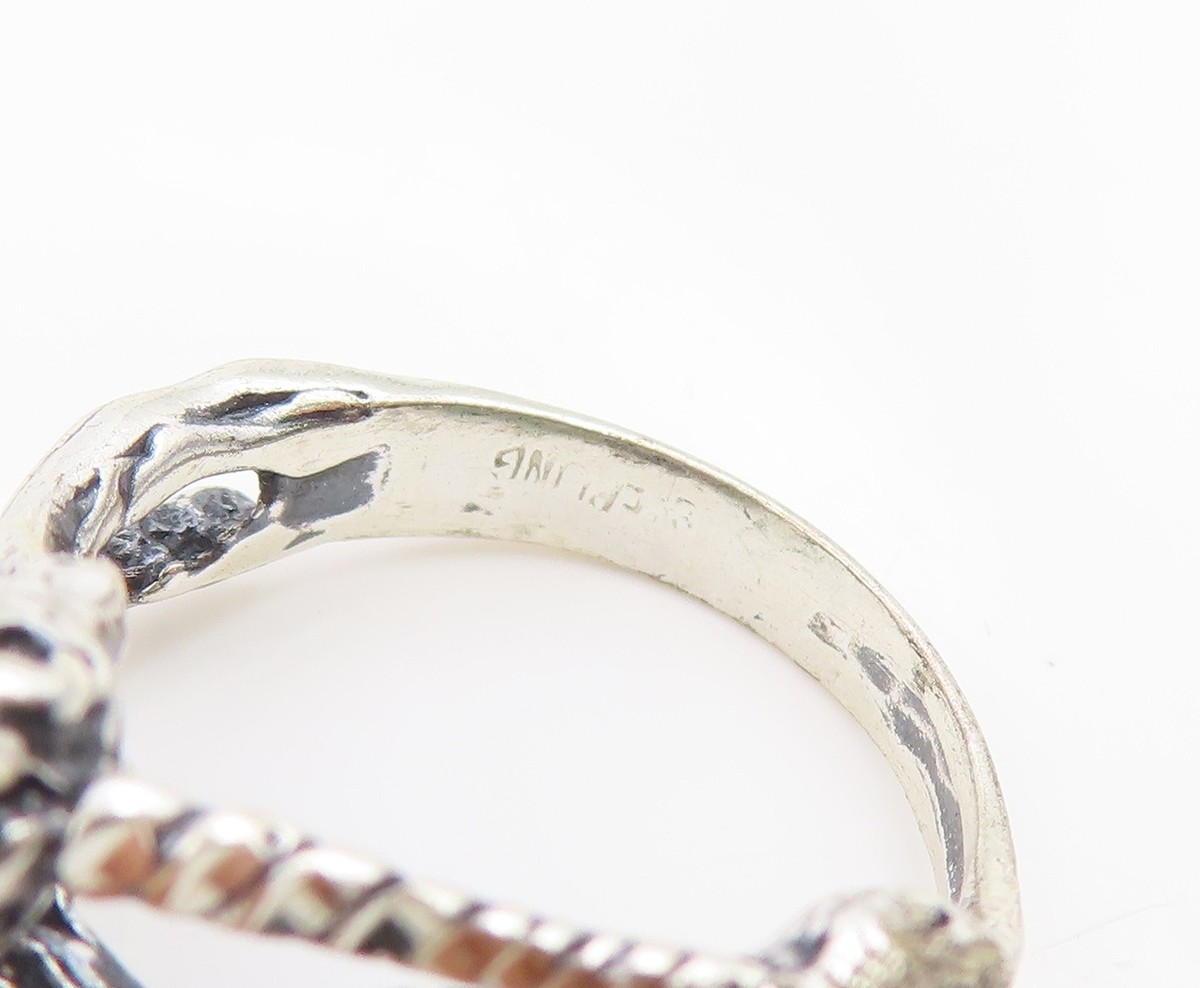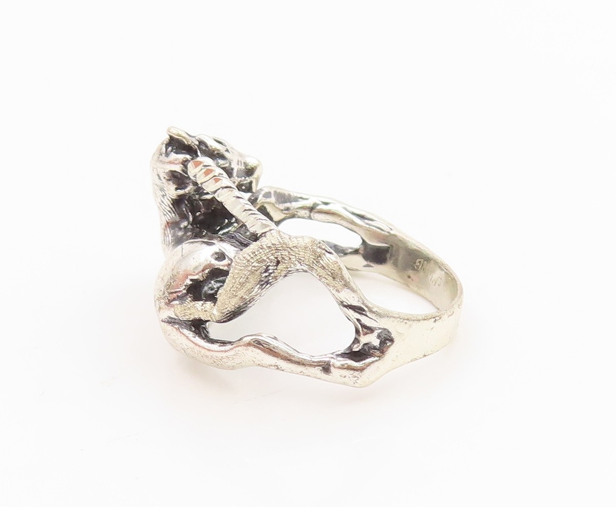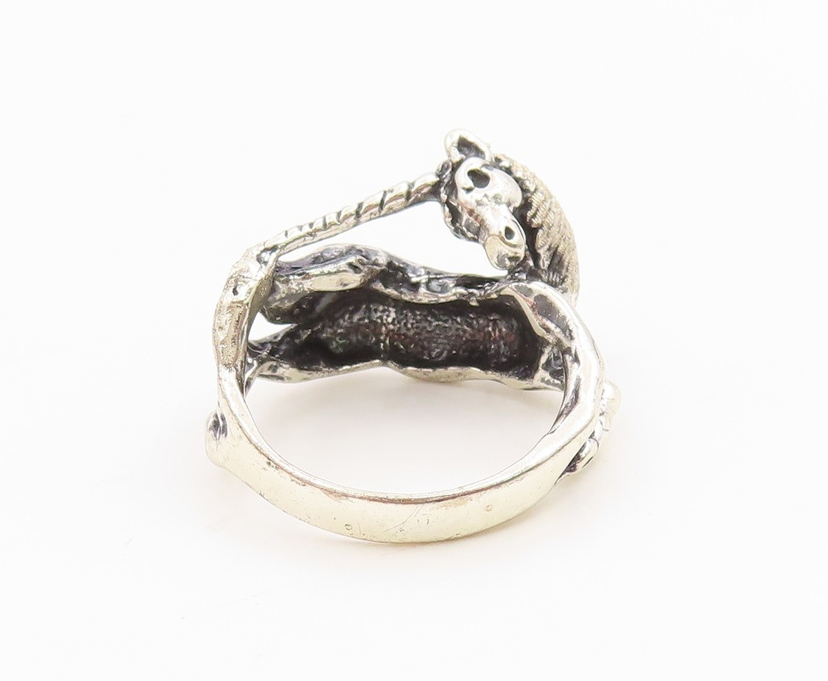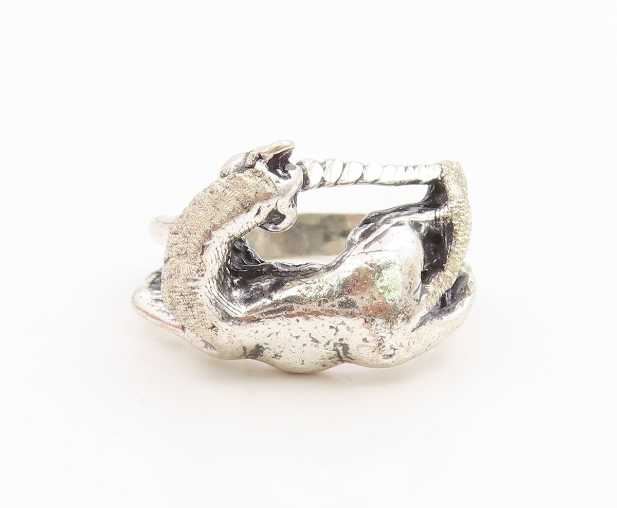 925 Sterling Silver Vintage Ring Modernist Unicorn Motif Band Sz 5.5 RG35804