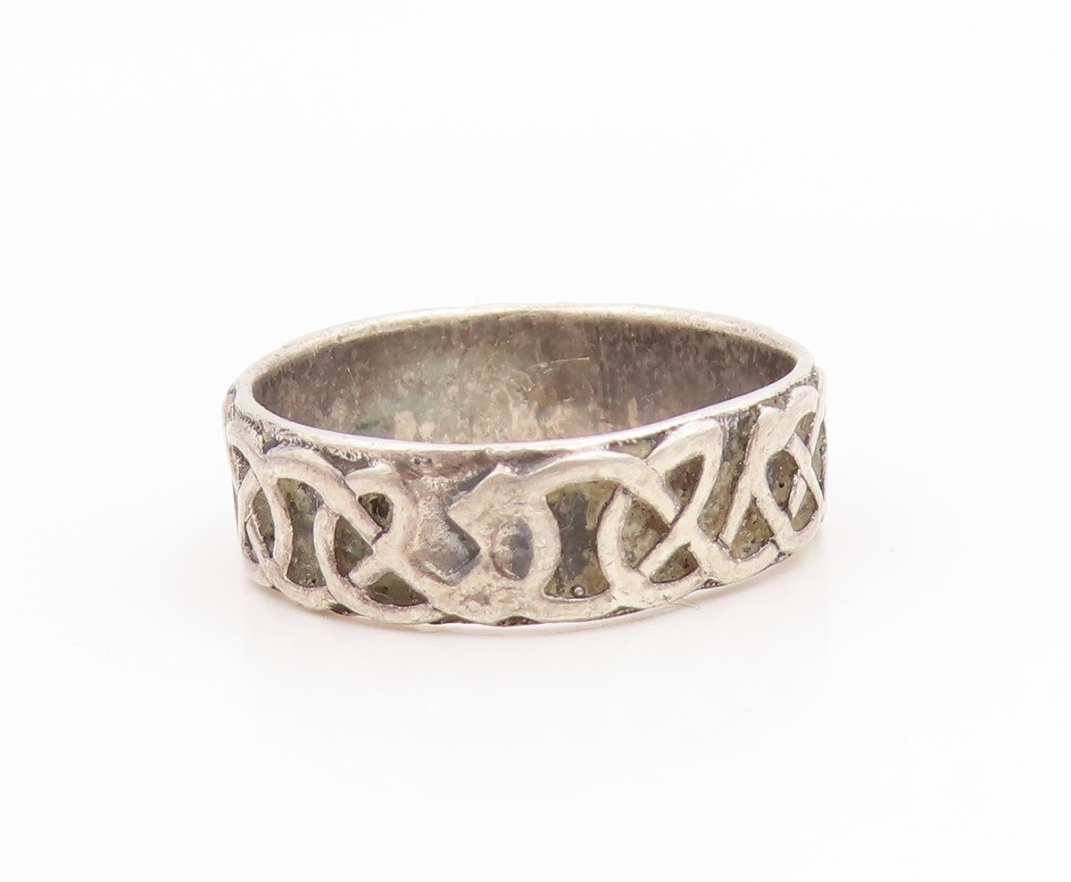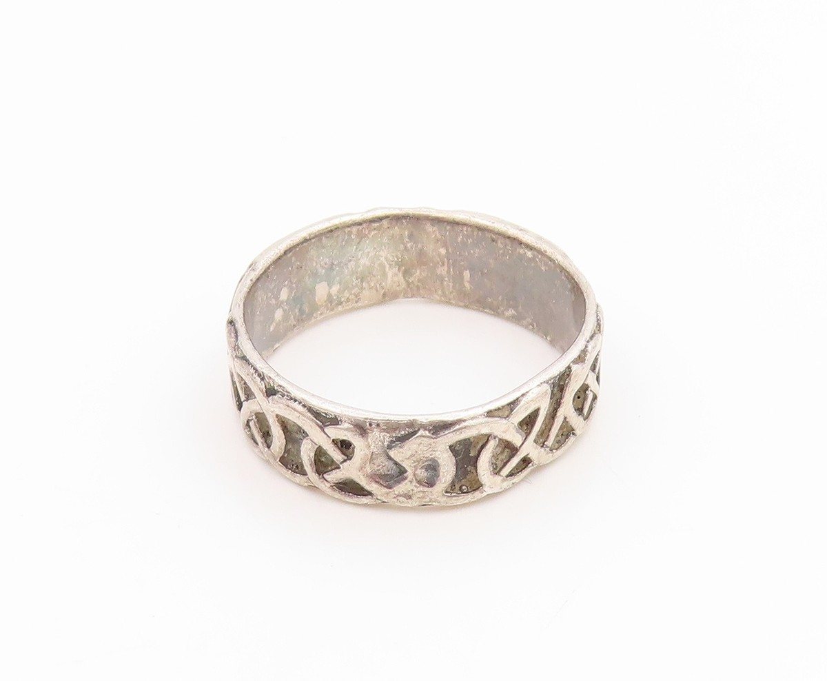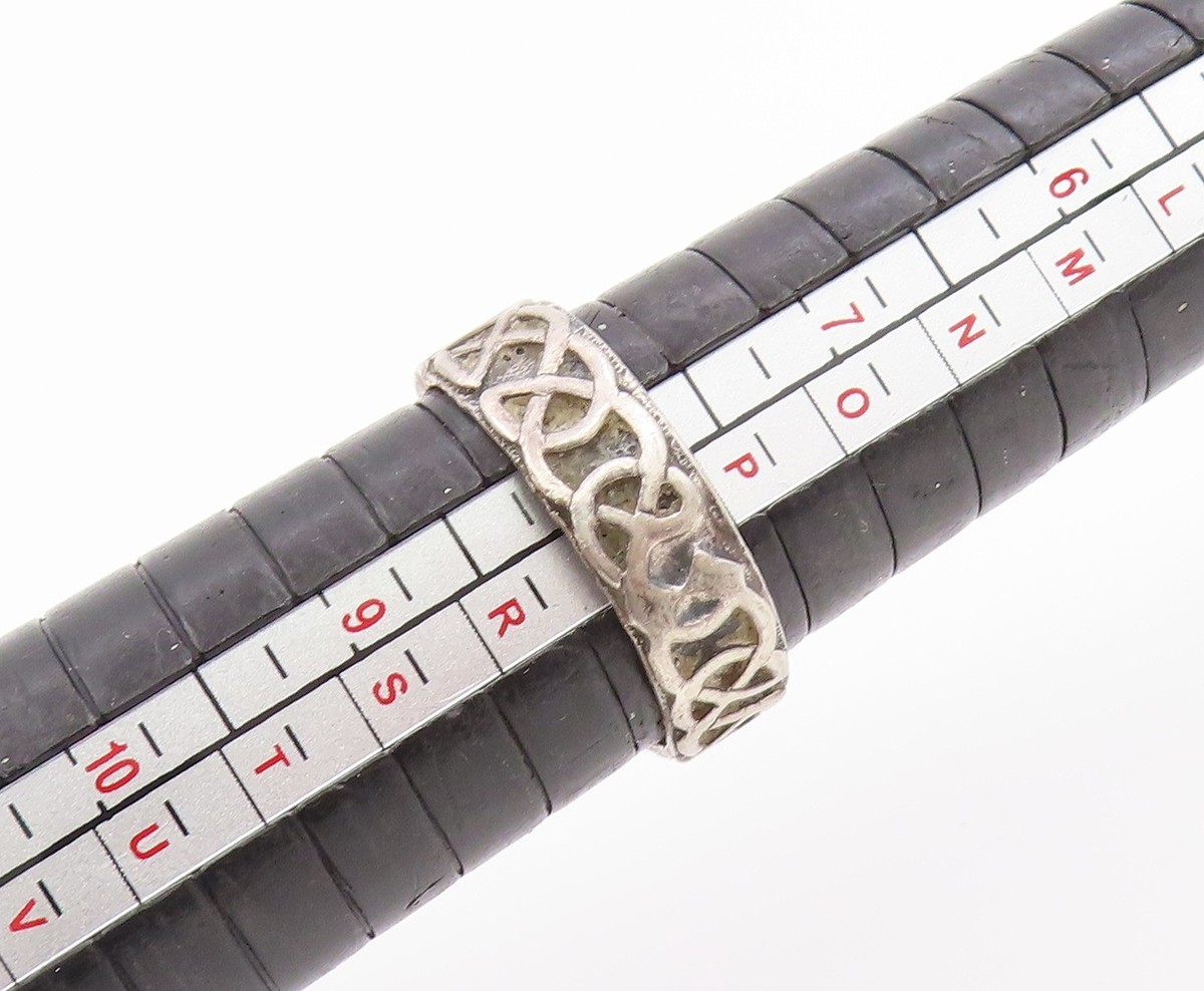 925 Sterling Silver Vintage Ring Carved Celtic Knot Dragon Band Sz 8.5 RG35813