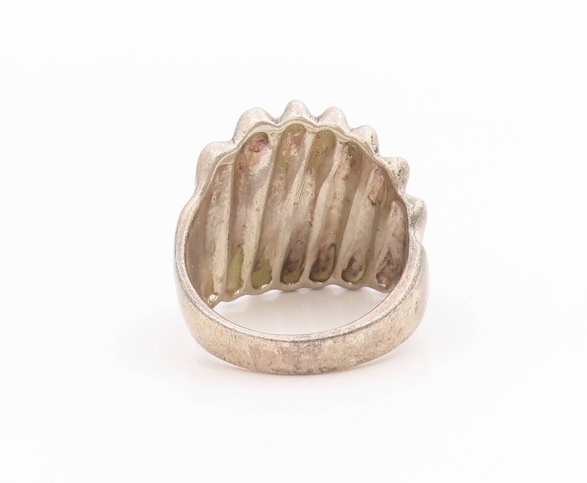 925 Sterling Silver Vintage Ring Modernist Ribbed Stripes Band Sz 7.5 RG35807