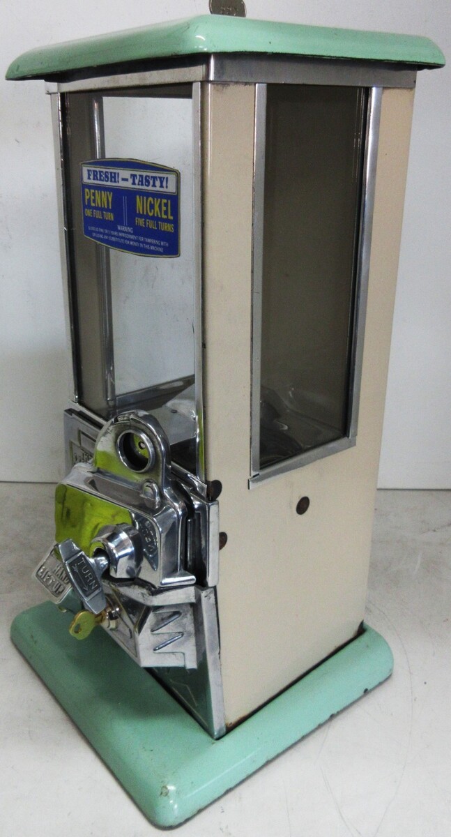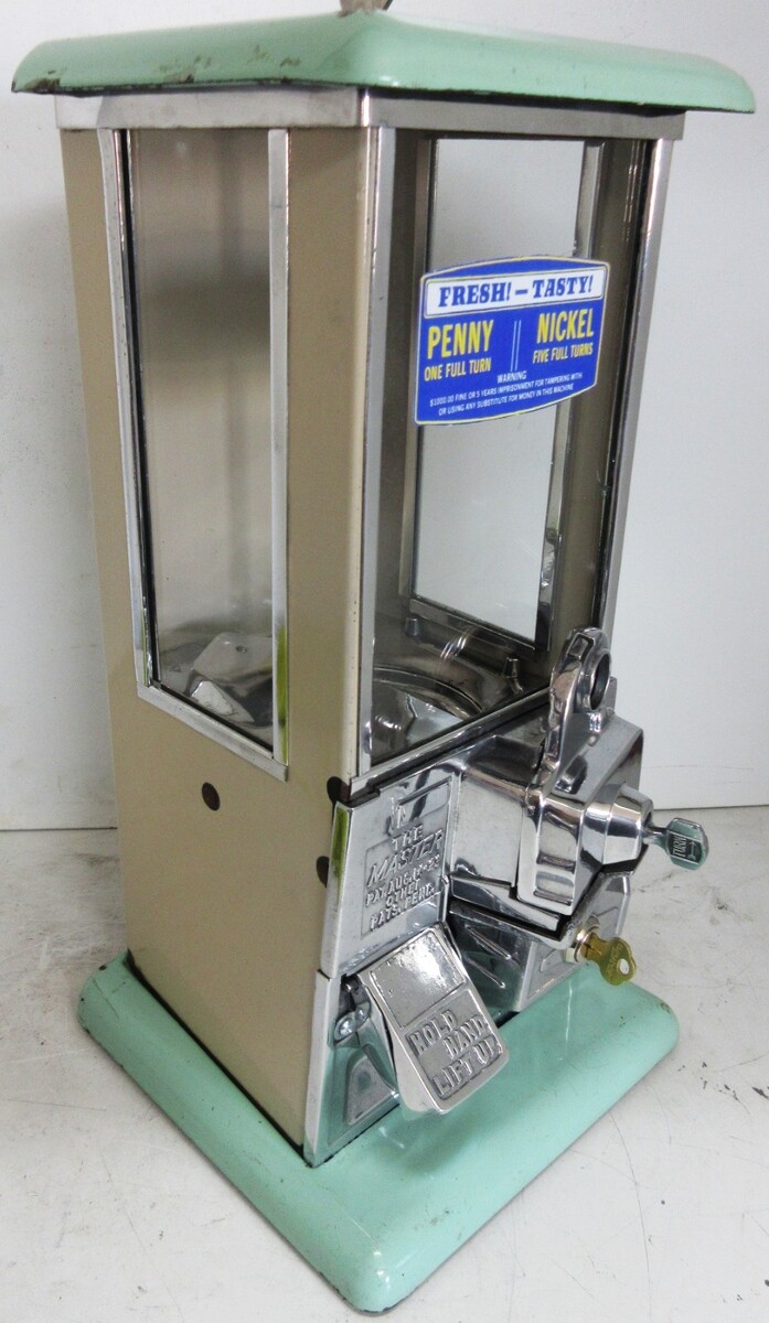 Penny / Nickel Master round ballgum dispenser green / tan finish, circa 1930's sale investment of only $695 ( normal $995. )