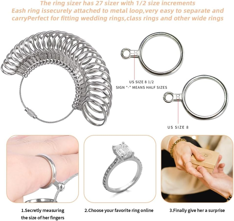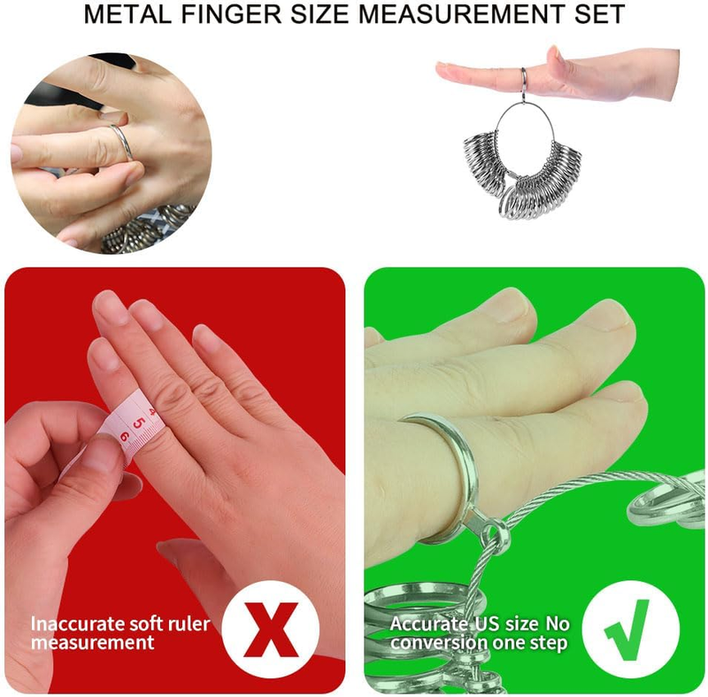 Metal ring measurer and ring sizer help you easy to know which size you need, can give your families,friends a surprise give her/him a correct size ring as a gift.