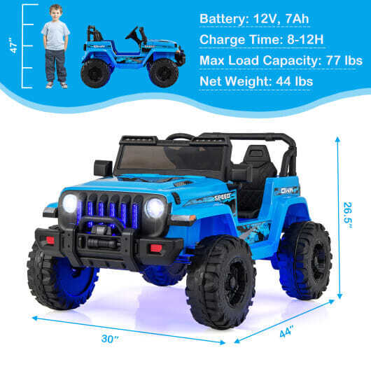12V Kids Ride-on Jeep Car with 2.4 G Remote Control-Blue - Color: Blue