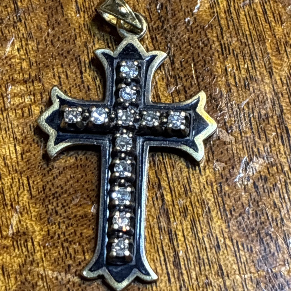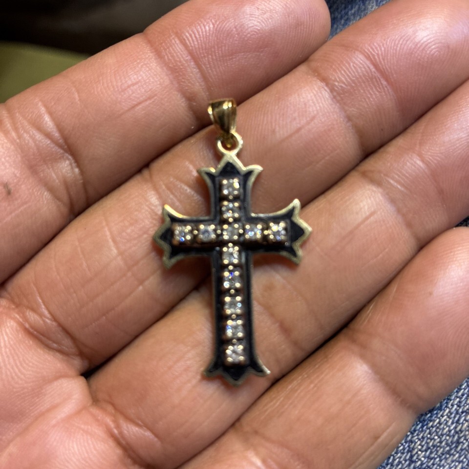 Authenticity Guarantee Cross 14 Karat Gold Diamond Studded Black Enamel Out...