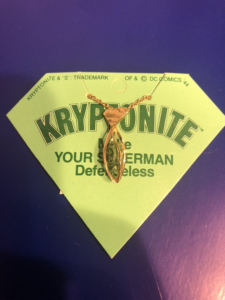 Vintage SUPERMAN Necklace chain 15” W/ Kryptonite Licensed New Gold Plated 1970s