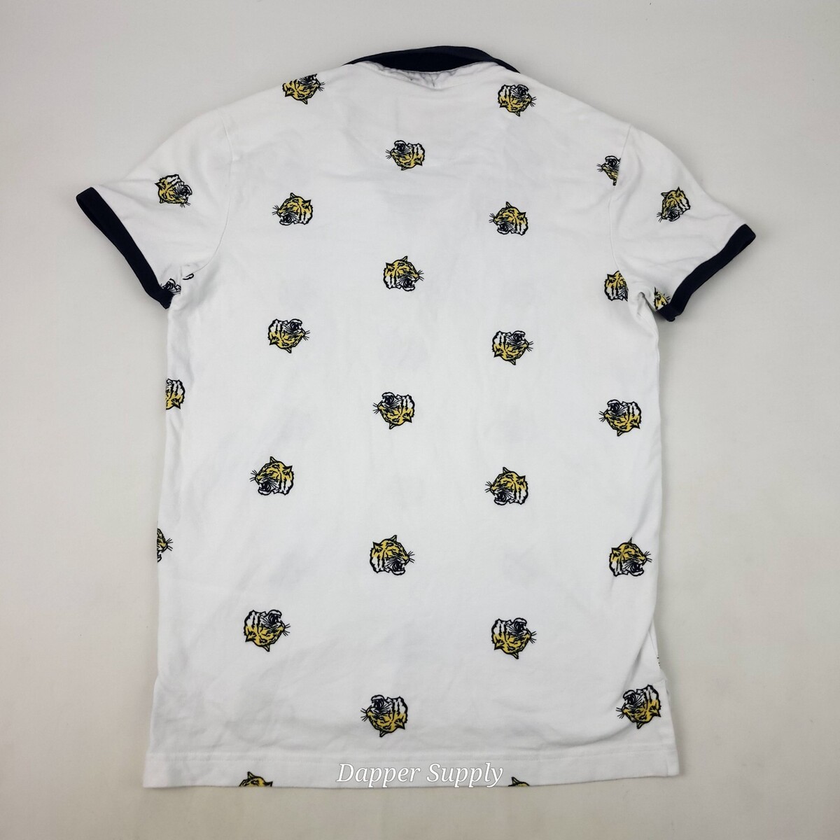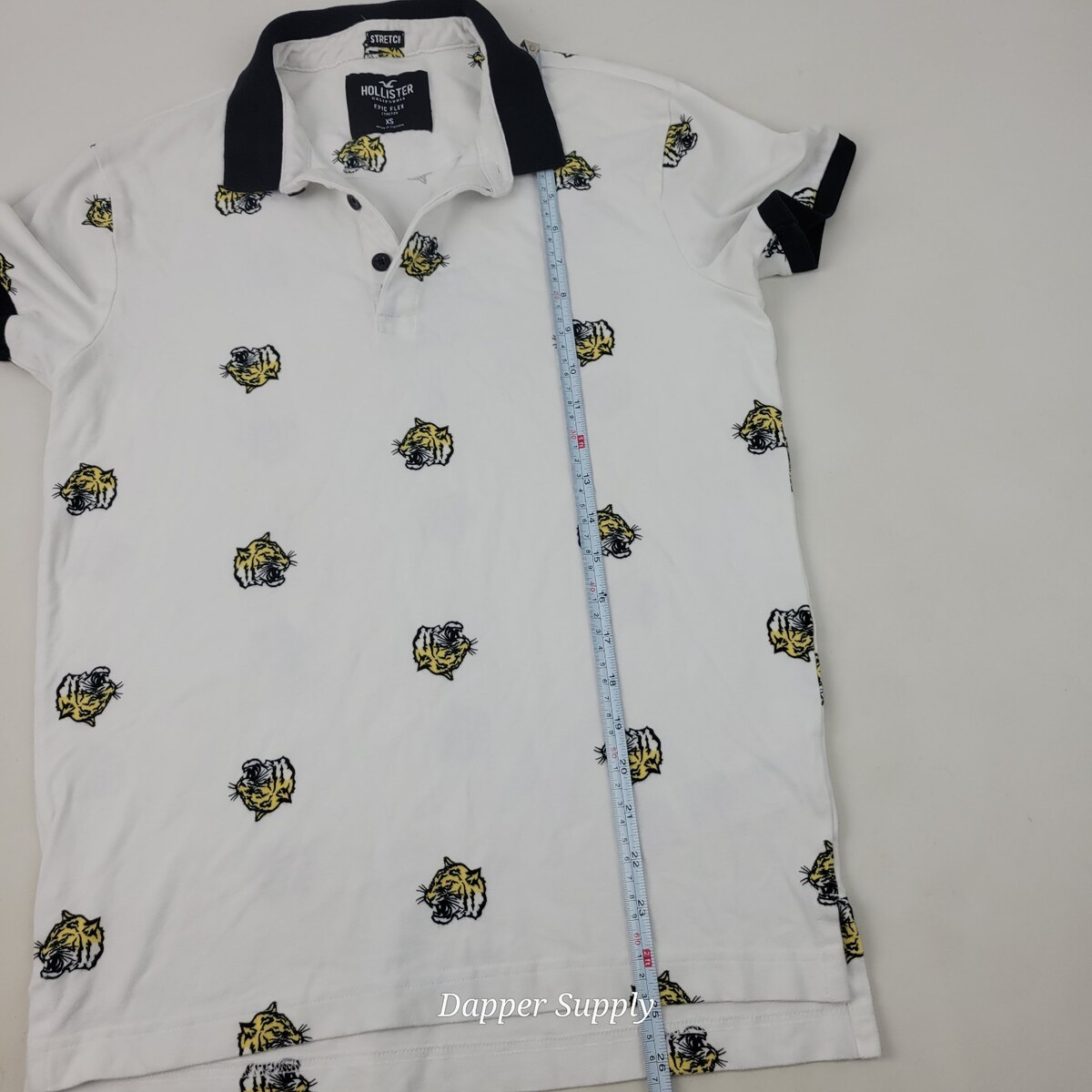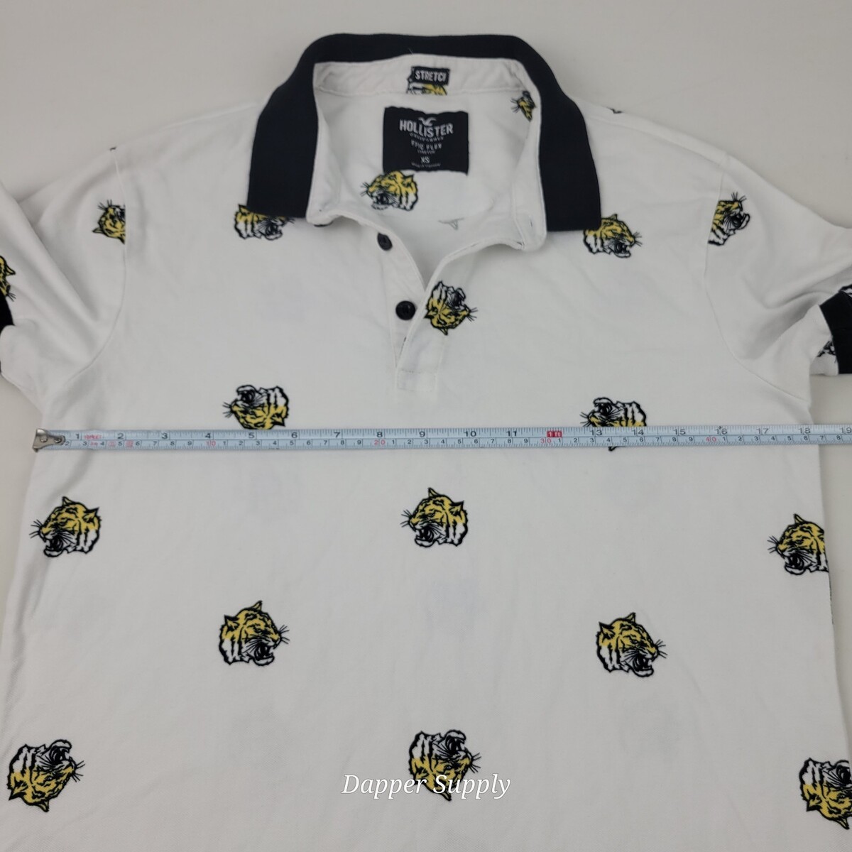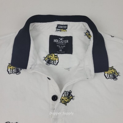 Hollister Epic Flex Stretch Short Sleeve Polo Shirt Sz XS White Tiger Rose Print