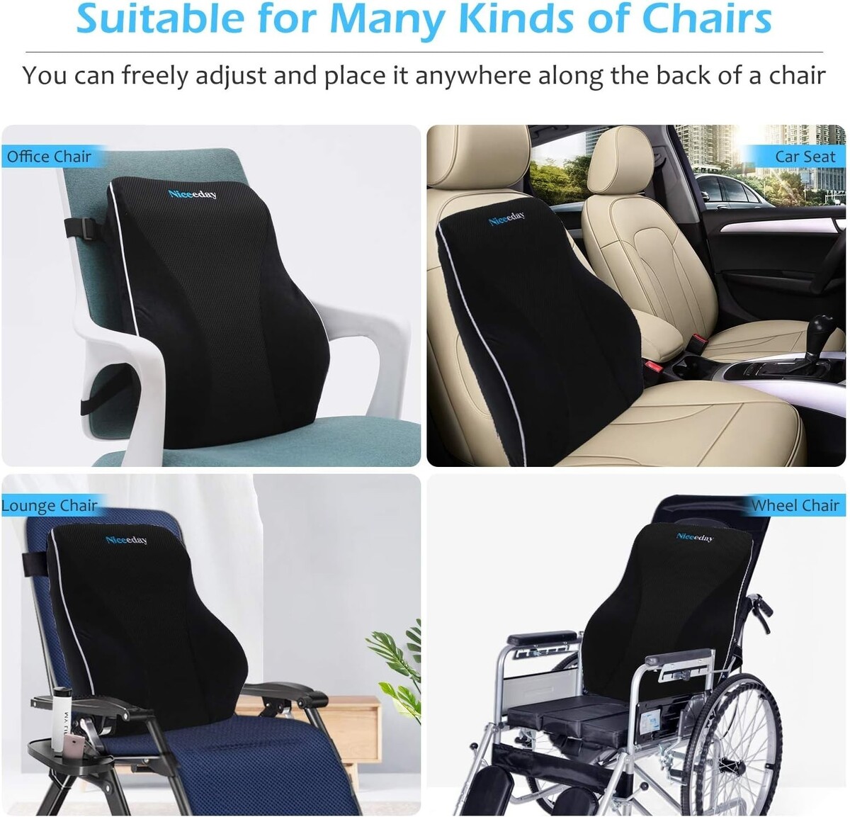 Versatile Fit: The adjustable straps, ranging from 19 inches to 50 inches, are designed to fit most chairs, making it ideal for office workers, pregnant women, drivers, and students alike.