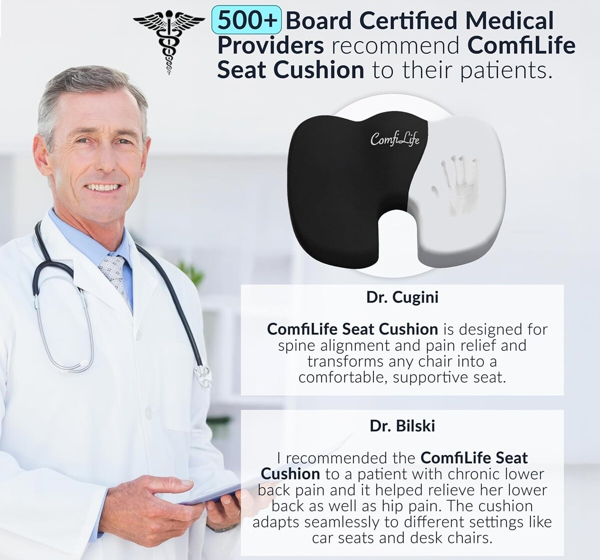 Alleviates pain associated with sciatica, herniated discs, tailbone injuries, pregnancy, hip pain, and hemorrhoids.