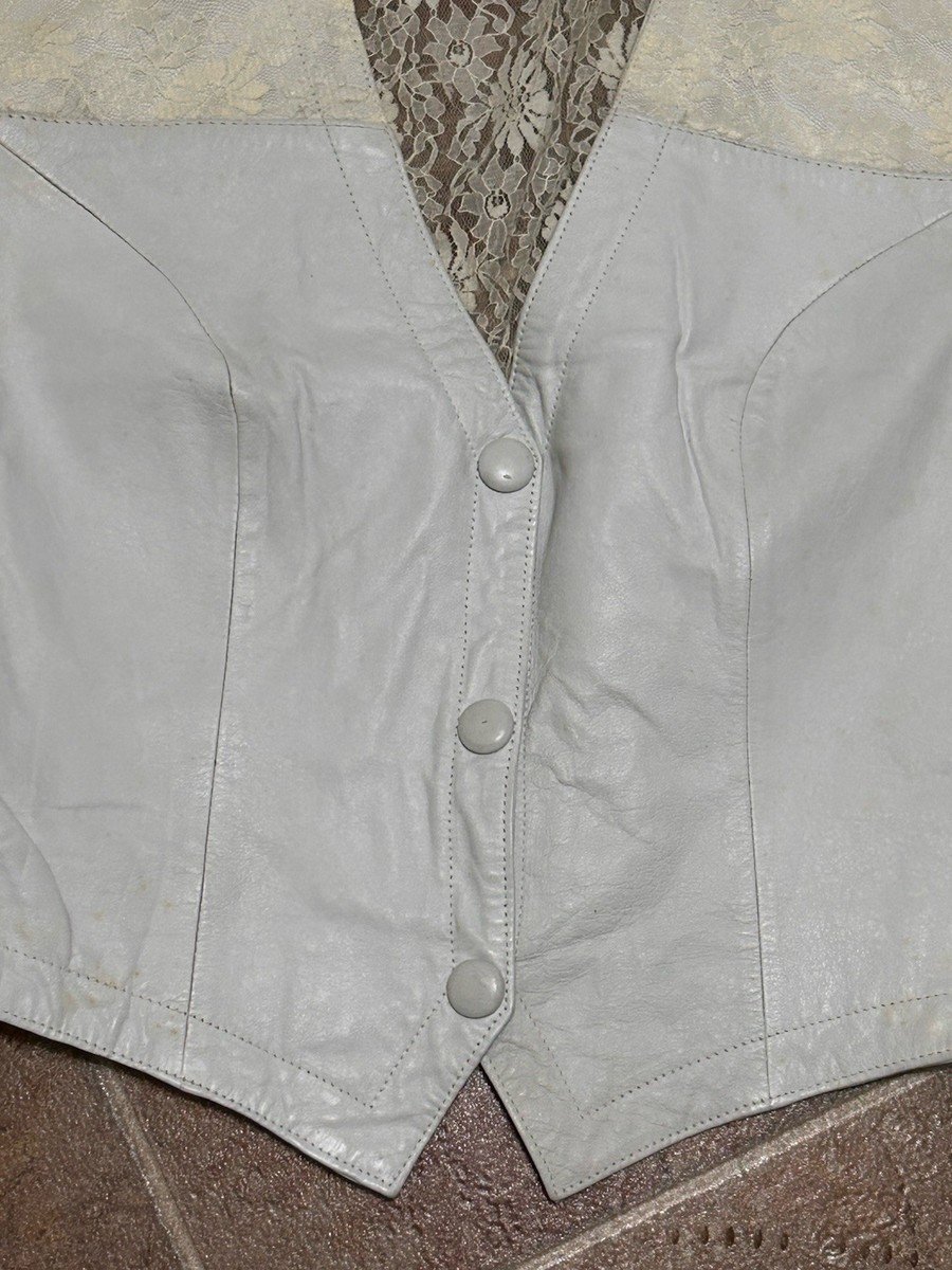 Vintage CHIA white leather lace 80's short crop jacket size Medium