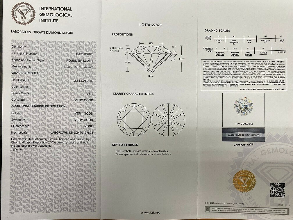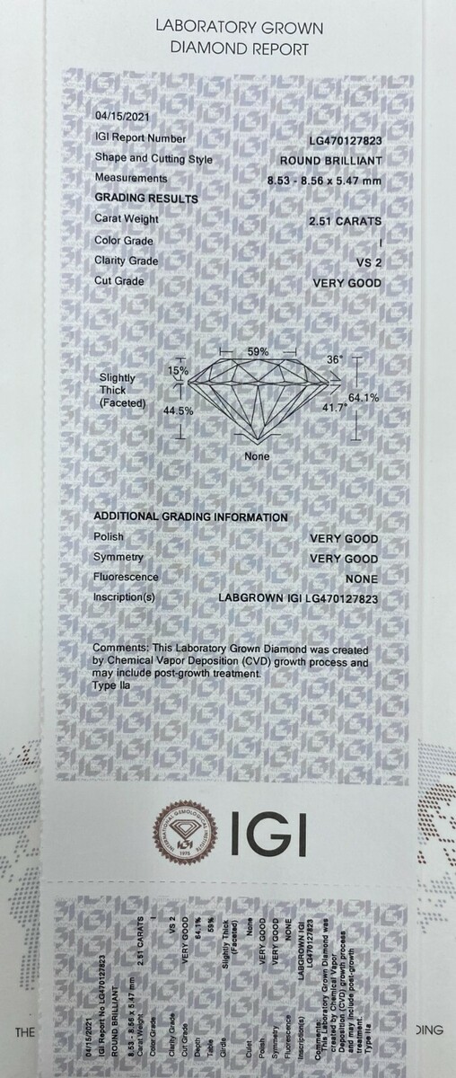 § ISCRIZIONE (S): Labgrown IGI LG478118151