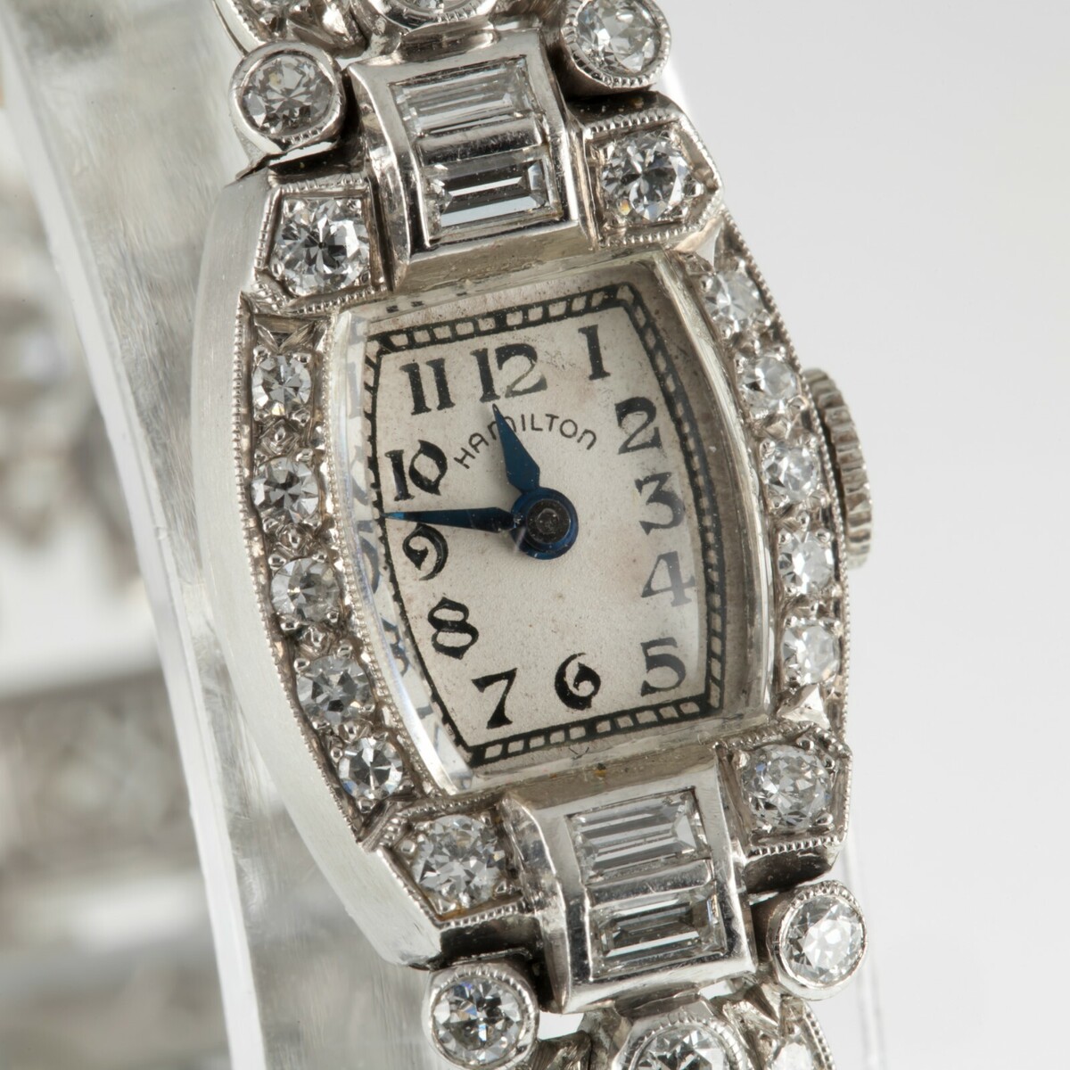 Hamilton Damen-Platin-Diamant-Kleideruhr, zartes, filigranes Mov. #911
