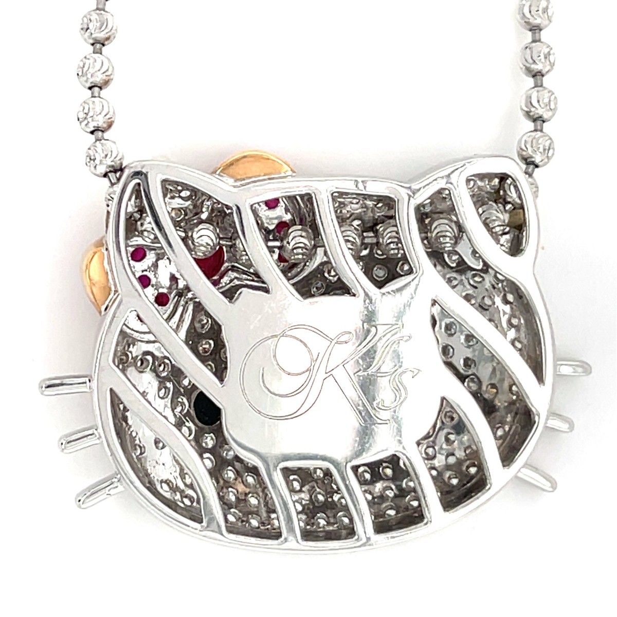 Kimora Lee Simons 18k Wg 1.30ct Diamant & 0.65ct Rubin Hello Kitty Kette 44.5cm
