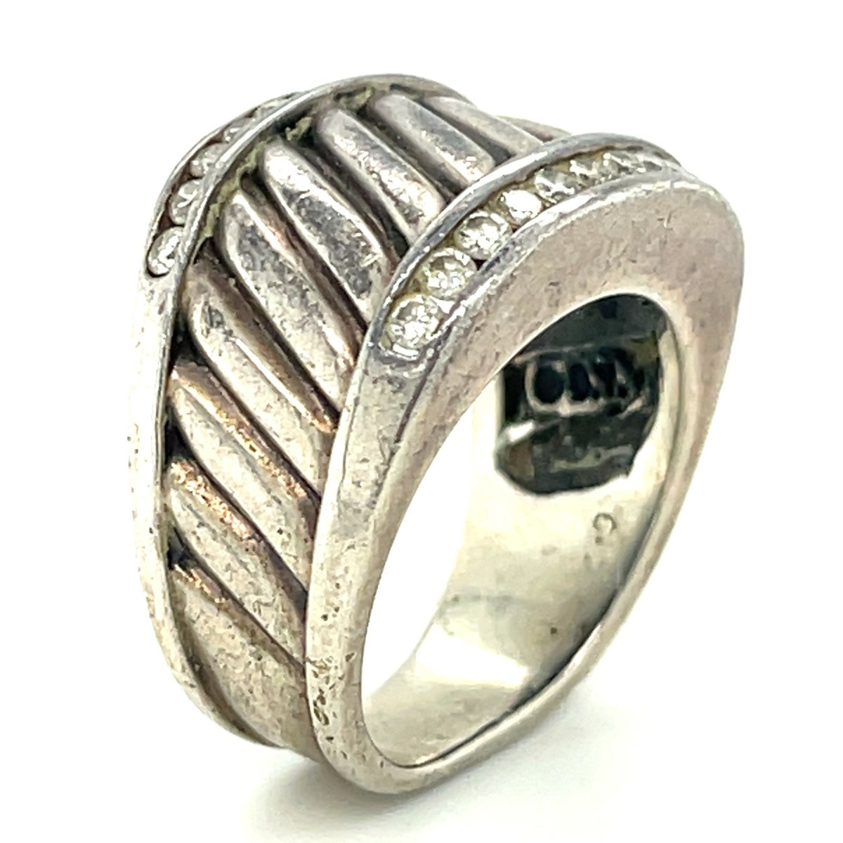 David Yurman Sterling und Diamant Kabel Stil Zigarre Band Ring-Sz 5.5 Hinreißend