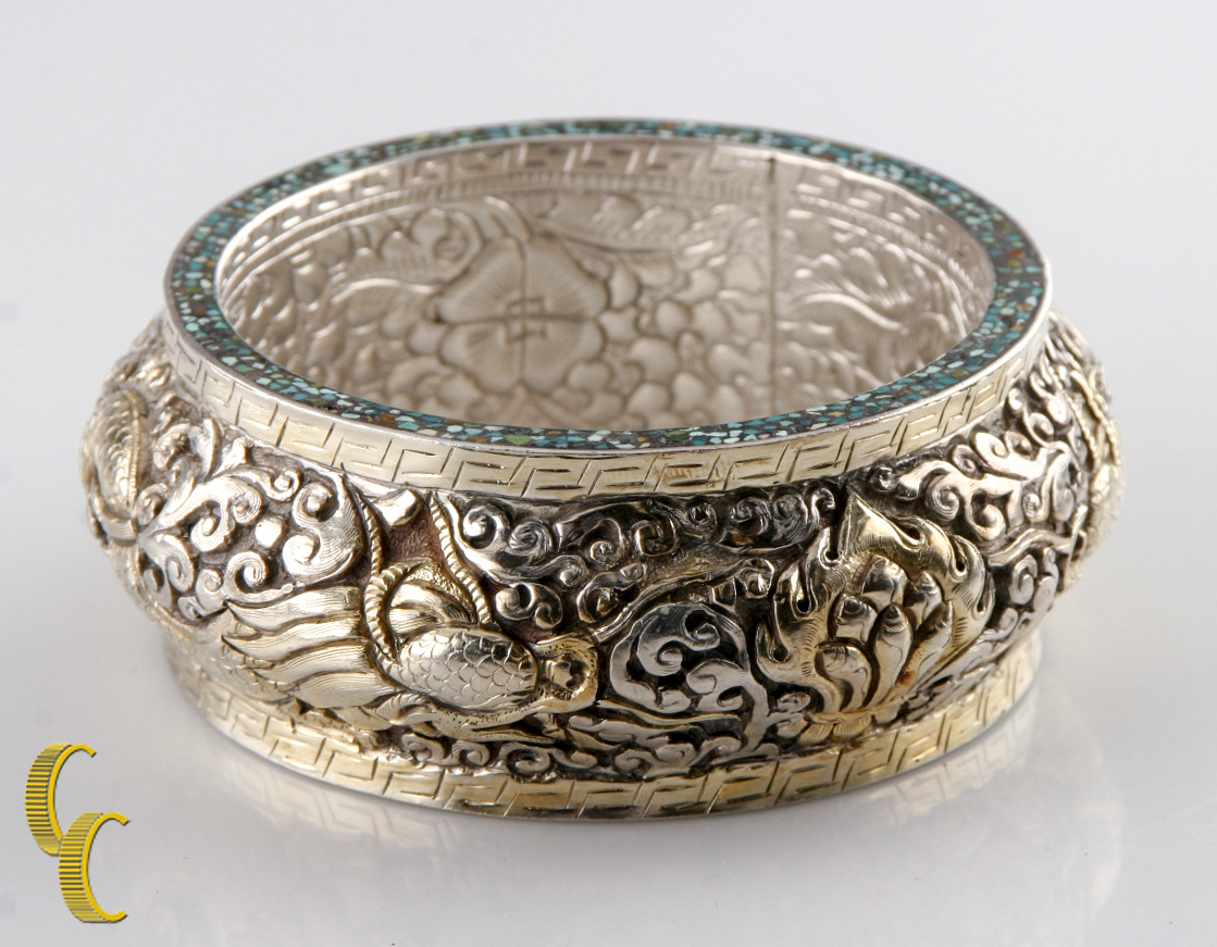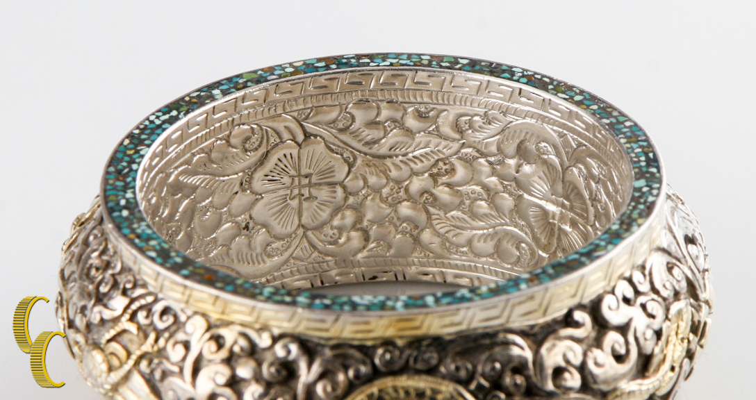 Argento Sterling Turchese Ricamo Grappolo Polsino Bracciale Splendido