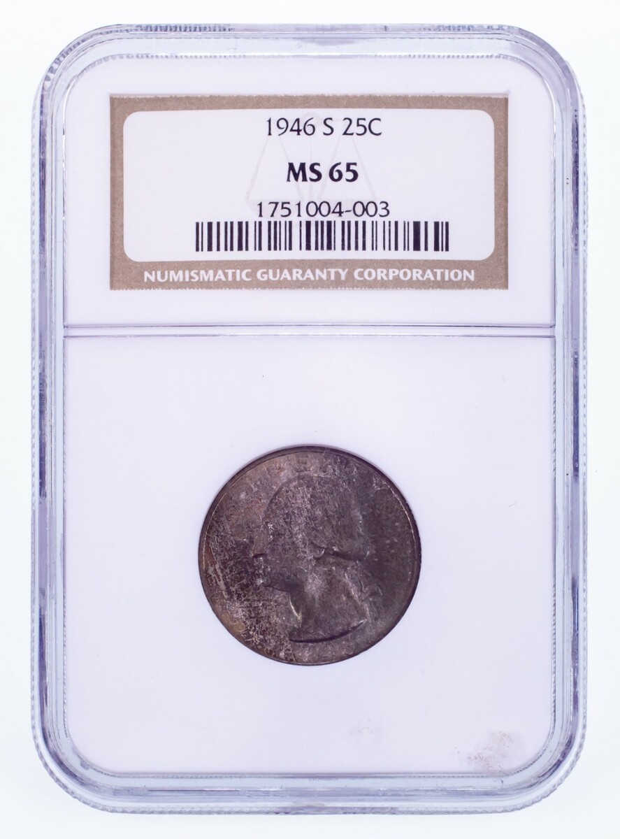 1946-S 25C Washington Quarter, von NGC als MS-65 eingestuft