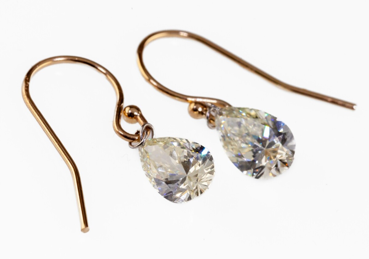 Wunderschone Birnenformige CVD Schwebende Diamant Ohrringe Ca. 1,8 CTW 14k Gold