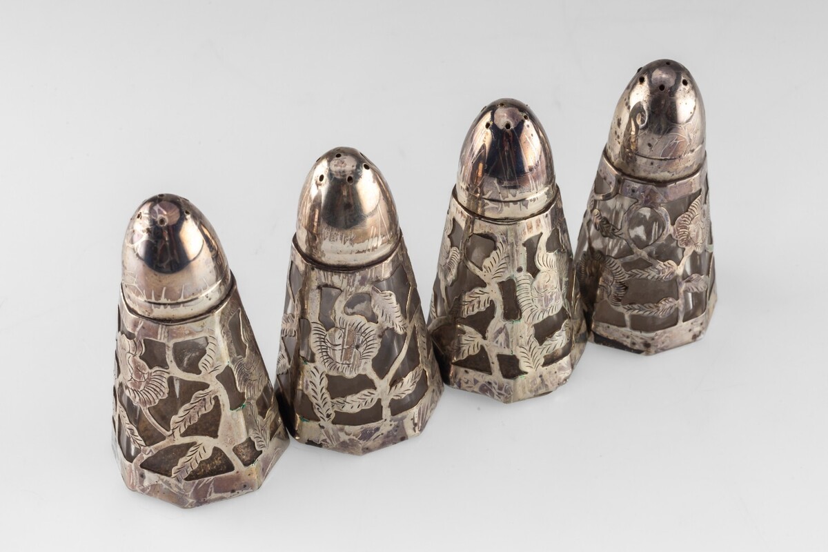 2 Sets Vintage Salz- und Pfefferstreuer aus Sterlingsilber