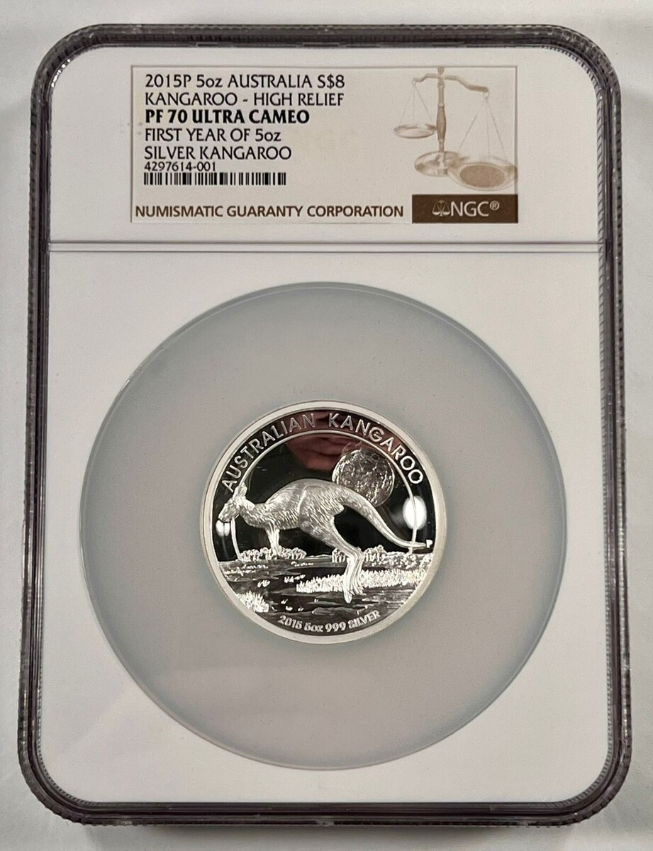 2015-P Australien 5 Oz S$8 High Relief Kangaroo NGC PF70 Ultra Cameo Box CoA