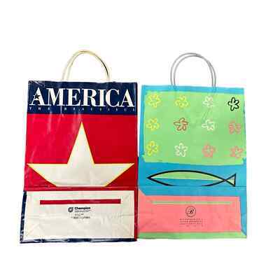 2 VTG Bloomingdales Paper Bags 1990 Laurie Rosenwald Fish/ America The Beautiful