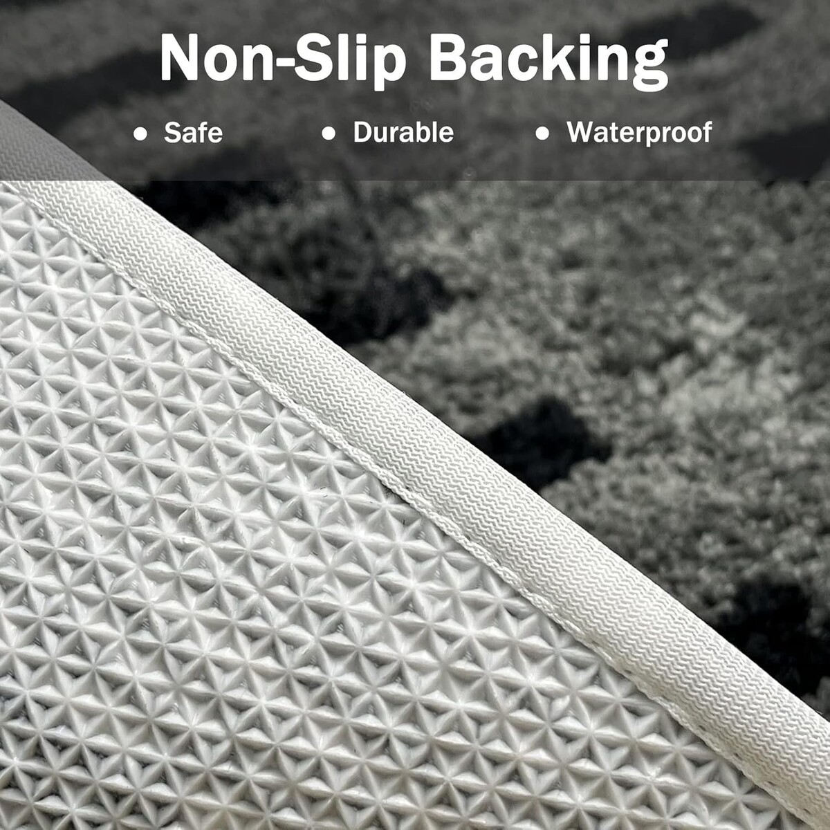 Non-Slip Base: Equipped with an anti-slip rubber backing, ensuring the rug stays securely in place to protect you and your family from slips and falls.