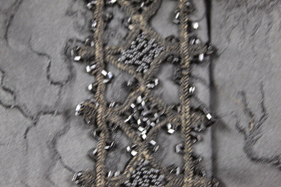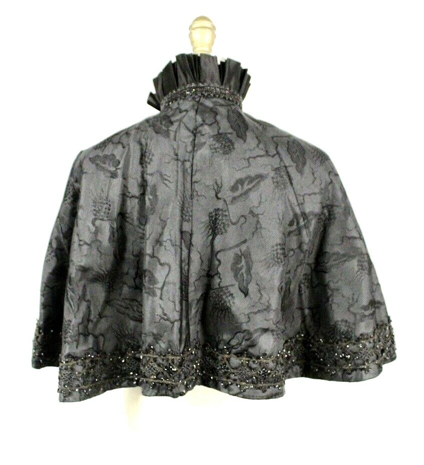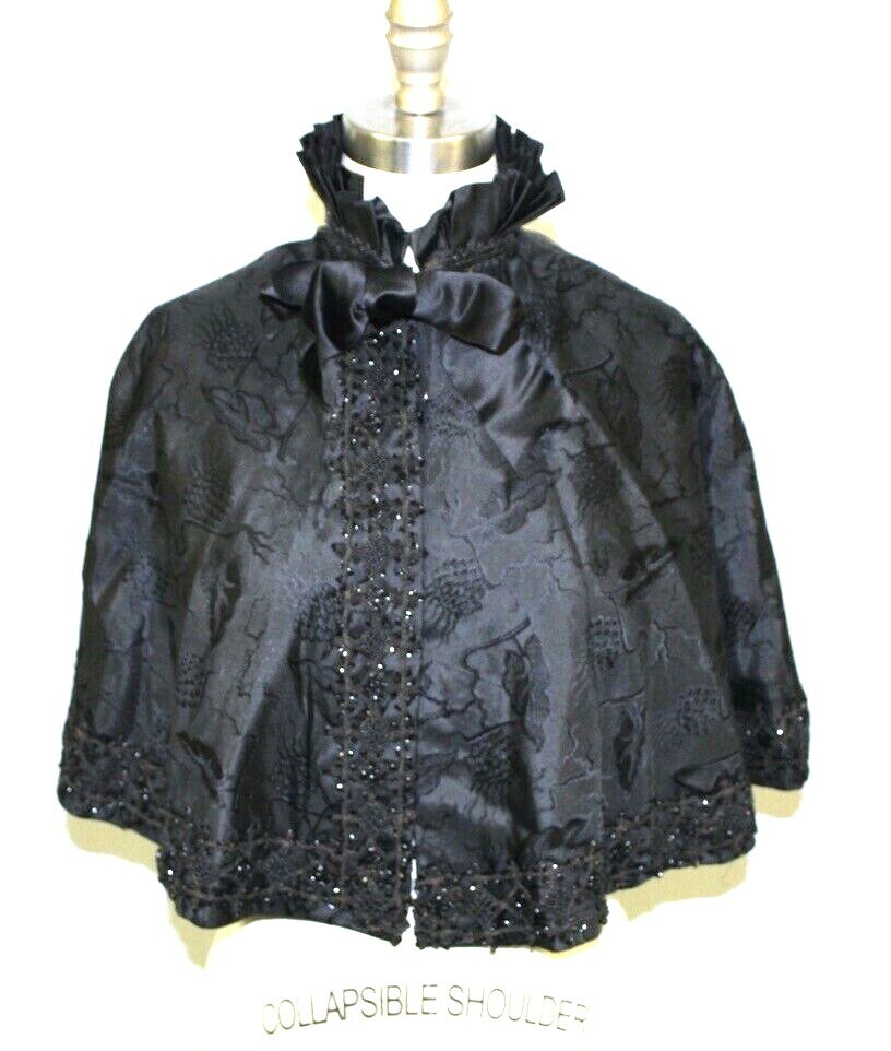 Nouveaute Antique Victorian Mourning Cape Black Beaded Silk Damask Trim 1800s
