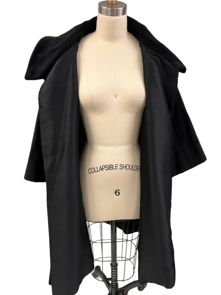 Nina Ricci VTG 1950s Swing Coat Black Wool Raw Silk O/S La Boutique Paris France