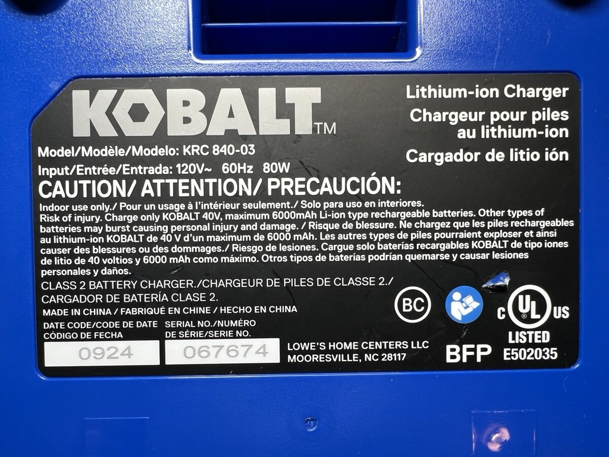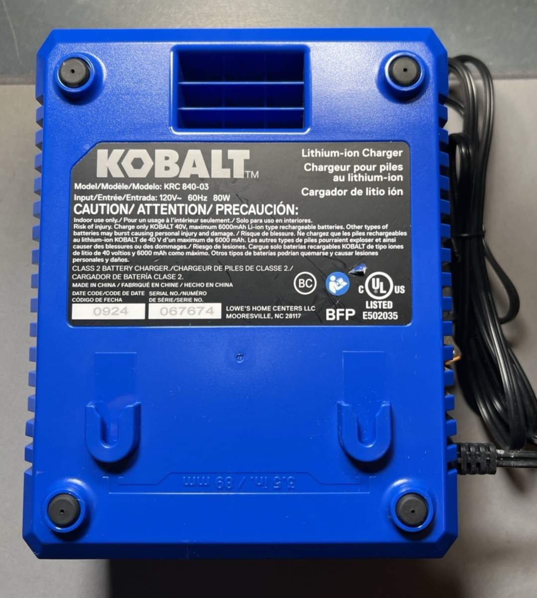 Kobalt 40 Volt MAX Lithium-Ion Battery Charger KRC 840-03 NEW / OPEN BOX