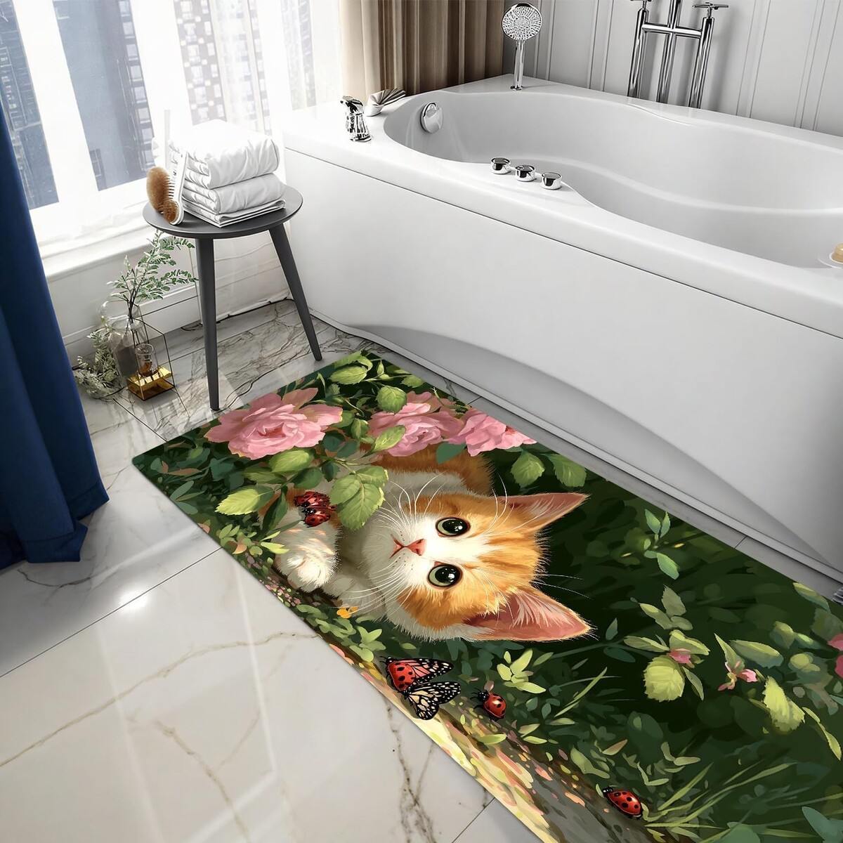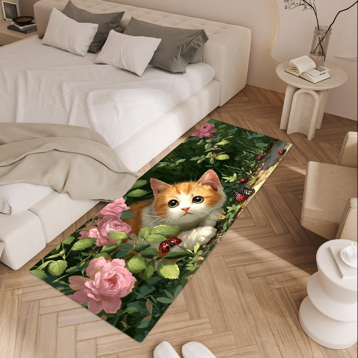 Transform your space into a magical haven with our Soft Polyester Cat Runner Mat featuring an enchanting illustration of a kitten among lively ladybugs and flowers. Measuring 20x47 inches, this attractive runner not only delights cat lovers but also offers a fun, safe element for children. The non-slip safety backing ensures stability on any floor surface, while the soft, cushioned polyester surface lends comfort underfoot for extended periods?ideal for bustling kitchens, colorful playrooms, or cozy bedrooms.