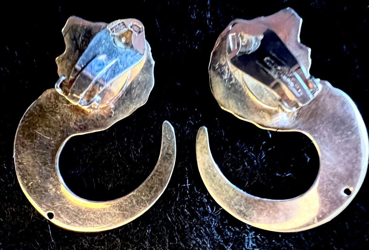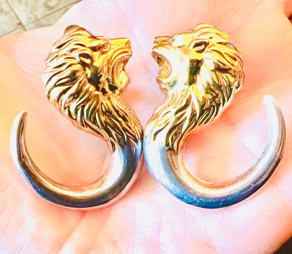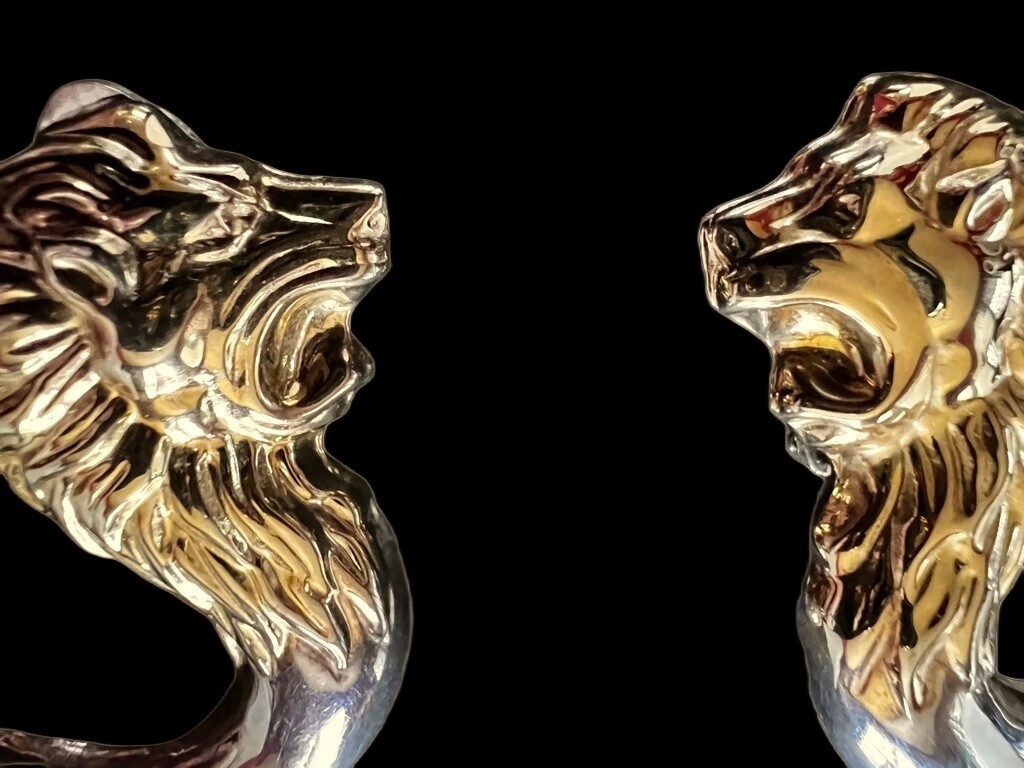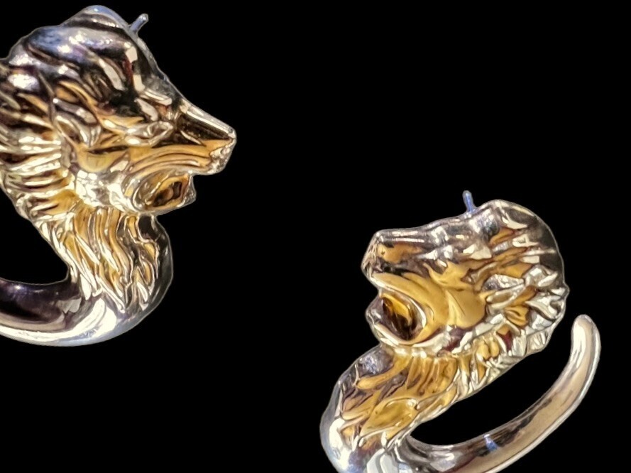 Stunning Pair VTG Bassani Style Sterling & Gold Lion Earrings Elite Italy 15.7 g