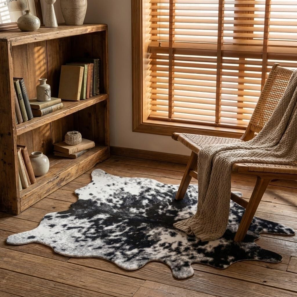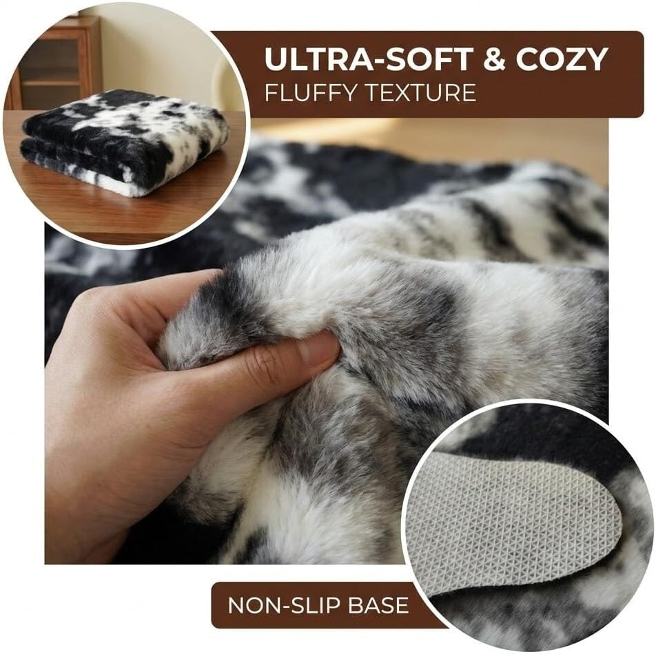 Add Rustic Charm with Soft Faux Cowhide Rug, 2.6ft x 4.1ft - Washable & Non-Slip