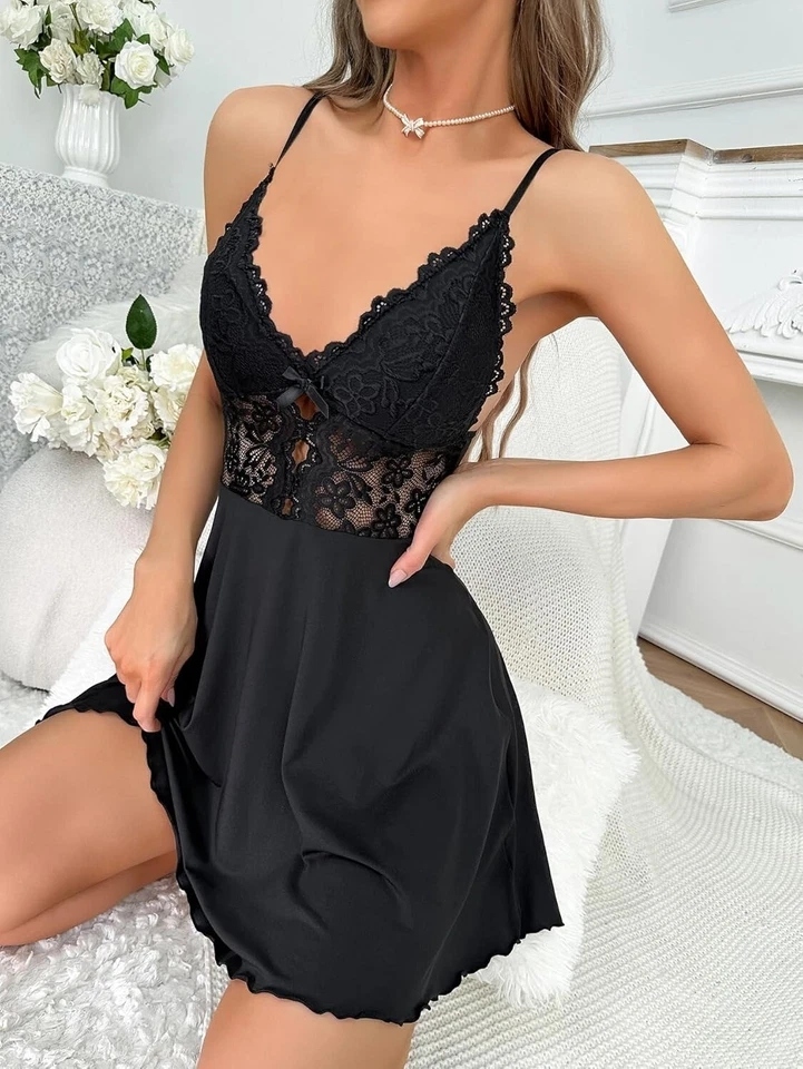 Women's Sexy Lingerie Lace V Neck Backless Cami Nightdress Sleepwear Teddy Dress