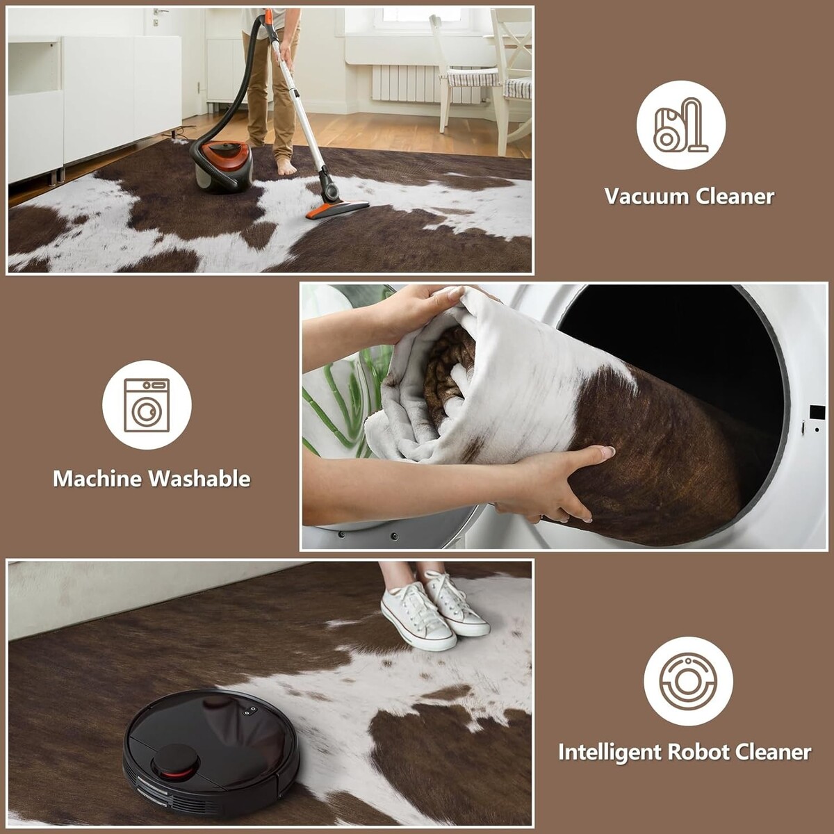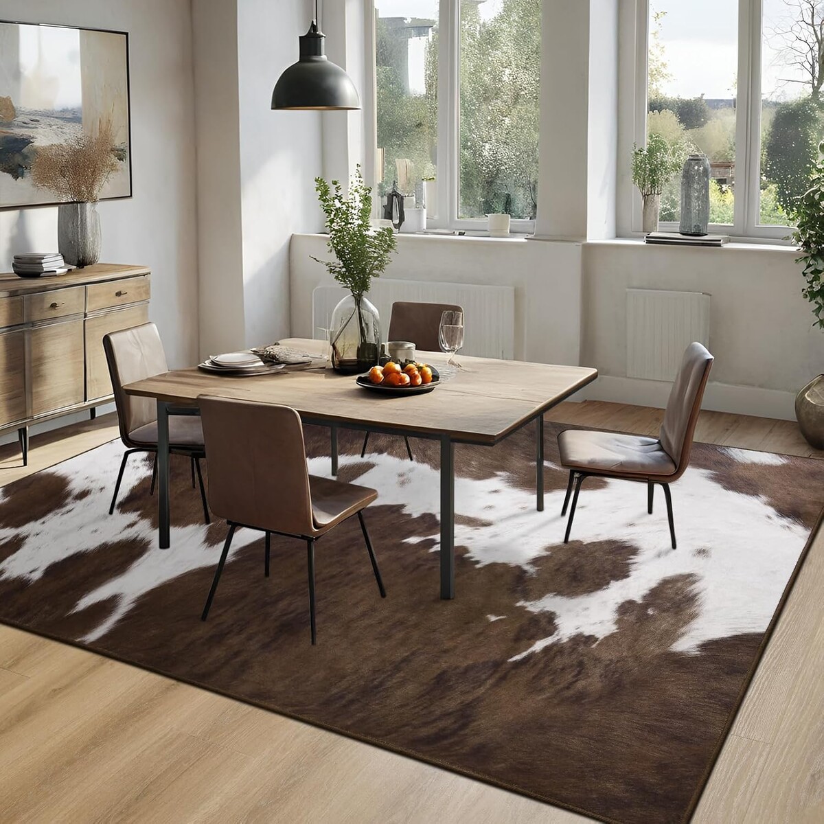 Stain Resistant 6x9 Area Rug - Soft Cowhide Print Non-Slip Carpet for Homes