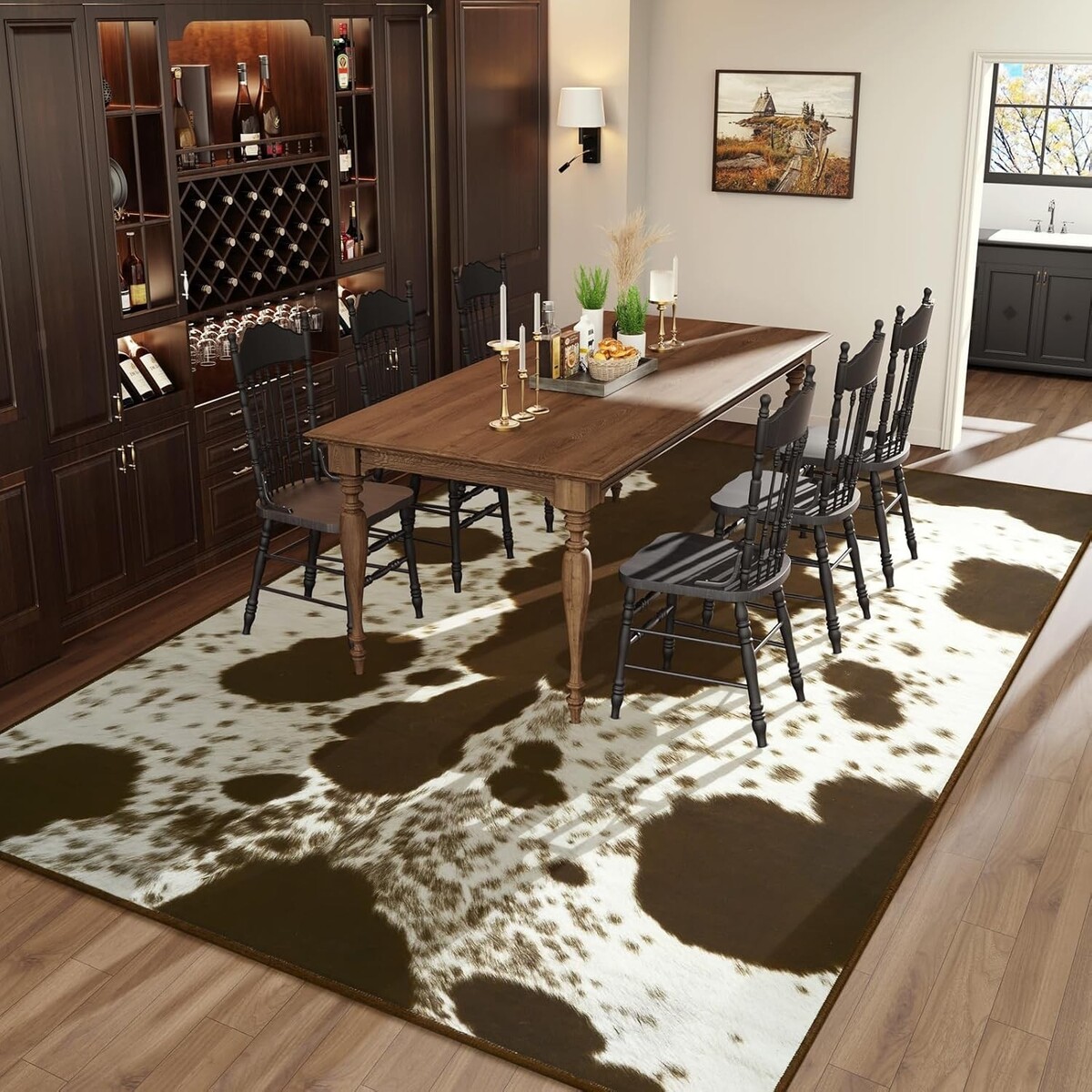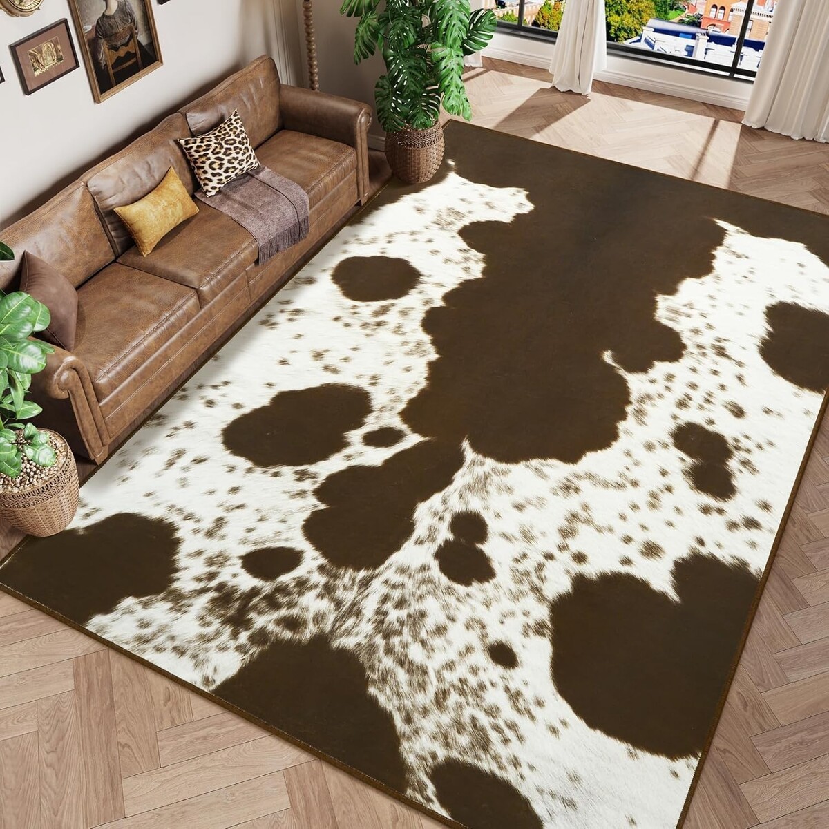 Versatile Low-Pile Faux Cowhide Rug, 5x7 Feet - Ideal for Living Room or Office