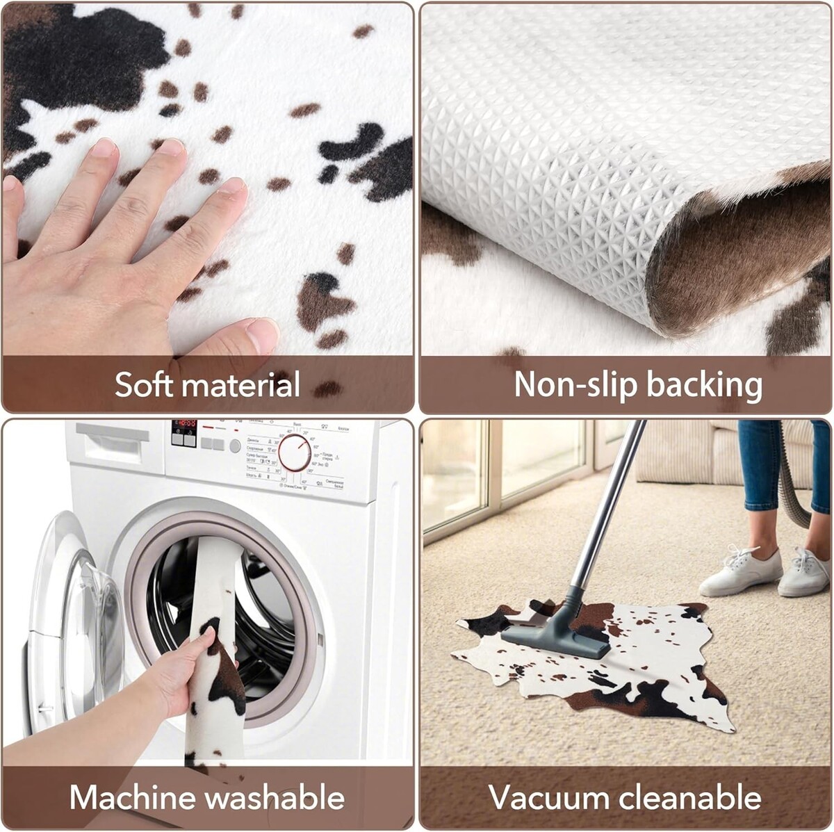Soft Faux Cowhide Rug Set - Anti-Slip Western Decor for Kids' Spaces