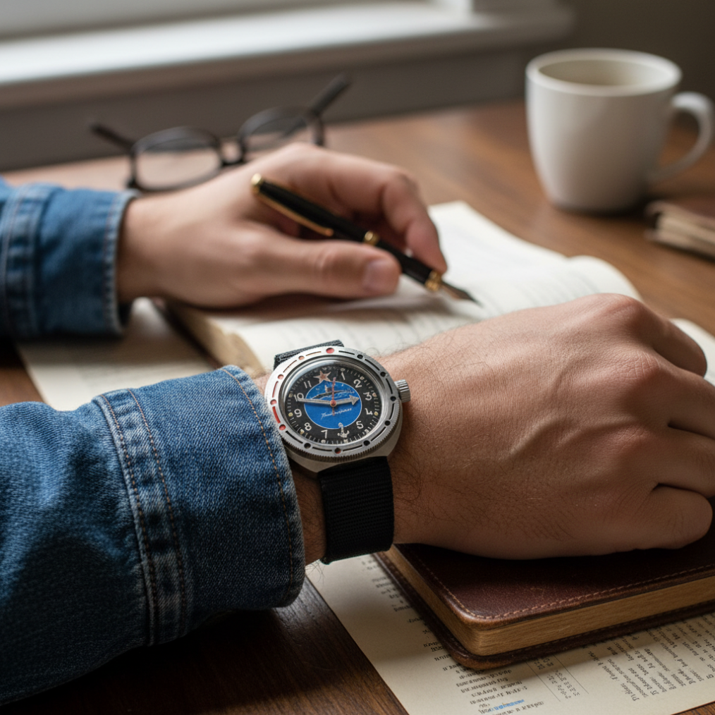 Vostok Amphibia USSR Mechanical Diver Watch Blue Dial Red Star Vintage Military