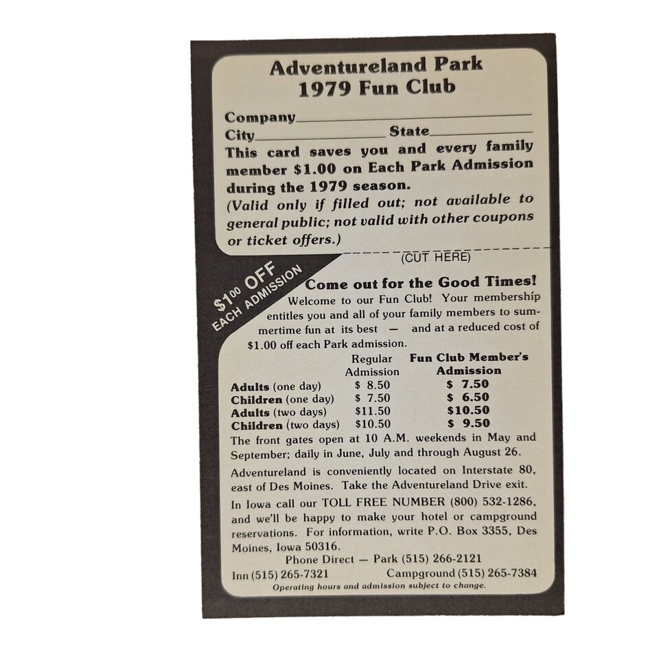 Postcard Adventureland Park 1979 Fun Club and similar items
