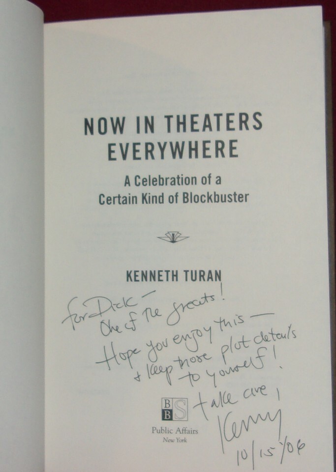 Kenneth Turan NOW IN THEATERS EVERYWHERE First ed SIGNED Film Critic Fine HC DJ