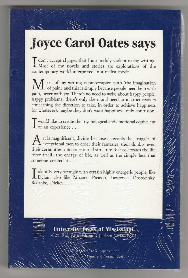 A collection of twenty-five interviews by various people, with Joyce Carol Oates that reveal how she writes, thinks, her passions, philosophies, and more.