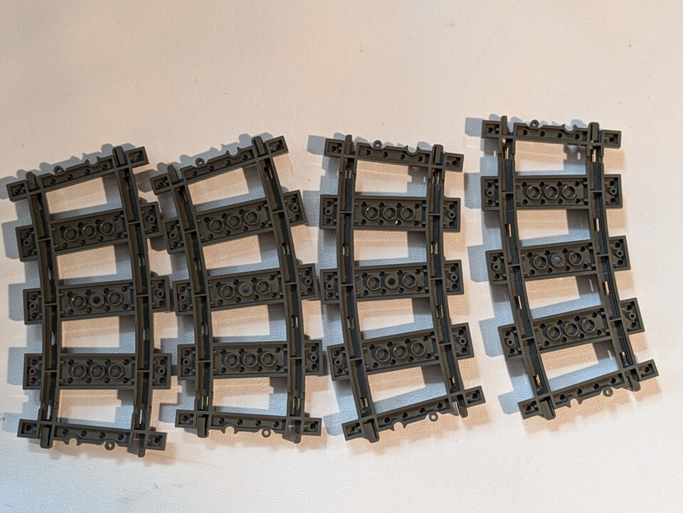 Lot of 4 Lego 9v Metal Rail Train Track Curved 4520 2867 4511 4512 4558 Old Grey