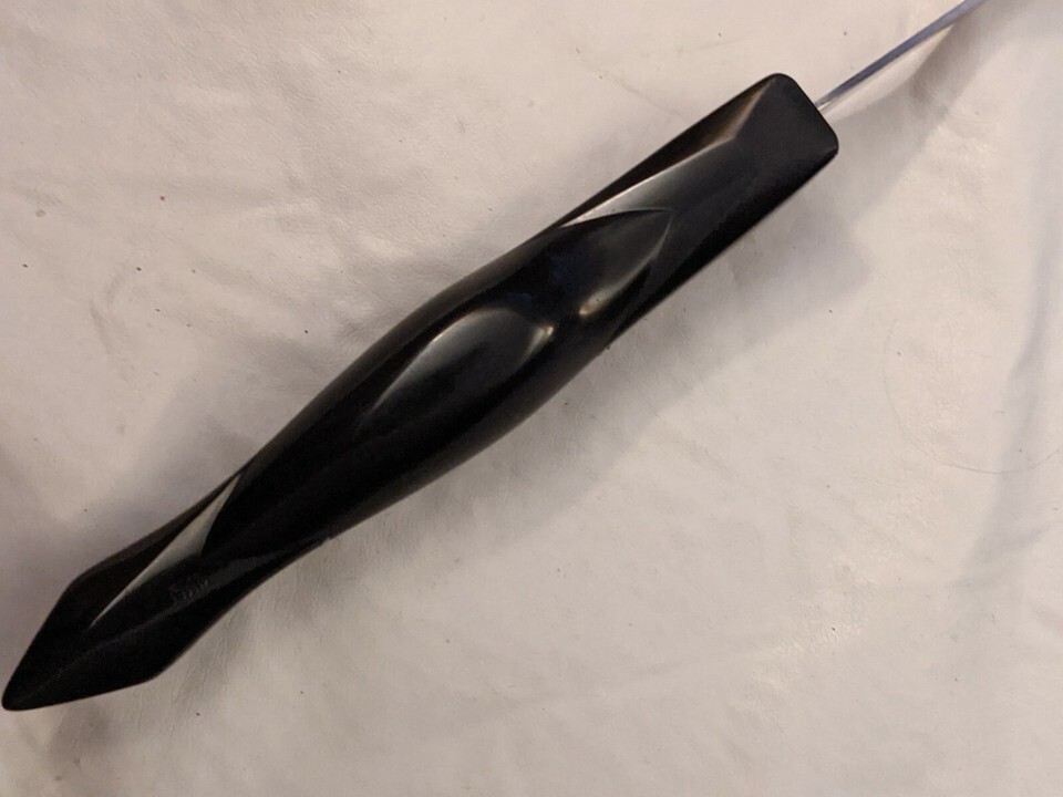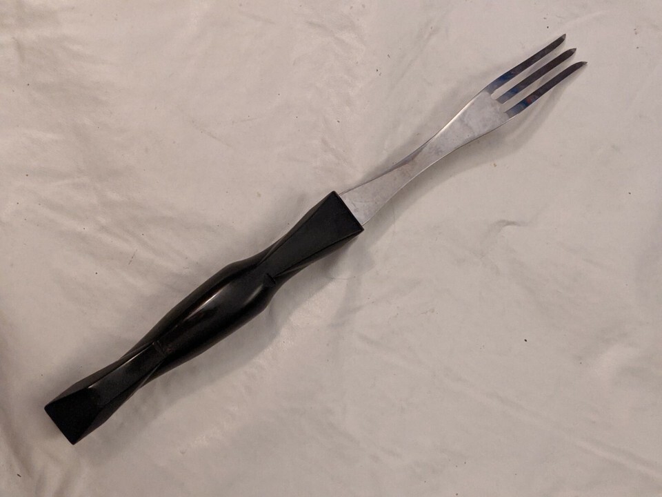 Up for sale is a used Cutco 1726 Turning Fork 3 Prong 11" Brown Orange Swirl Handle. The handle has 2 melted lines it.