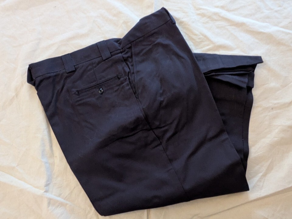 Blauer 8250 4 Pocket Cotton Pants in Dark Navy, Size 40 x 30 Regular. Made of 100% Cotton with a flat front design and snap closure. Features include pockets, machine washable. Brand: Blauer. Suitable for men, with a regular fit and straight leg style.