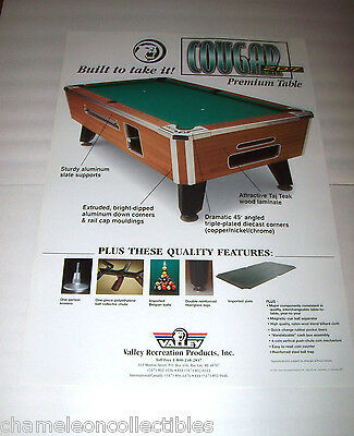 Valley Cougar Pool Table Wall POSTER 1998 Original Table Billiards Art 27" X 19"