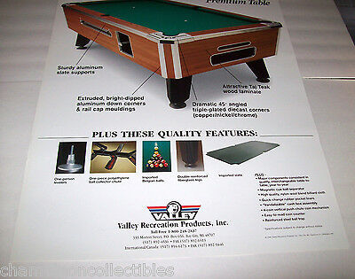 Original large 27" x 19" promo poster for the Valley pool table. This is not a sales flyer. Has some storage wrinkles and age wear. Shipped rolled in poster tube. See photos.
