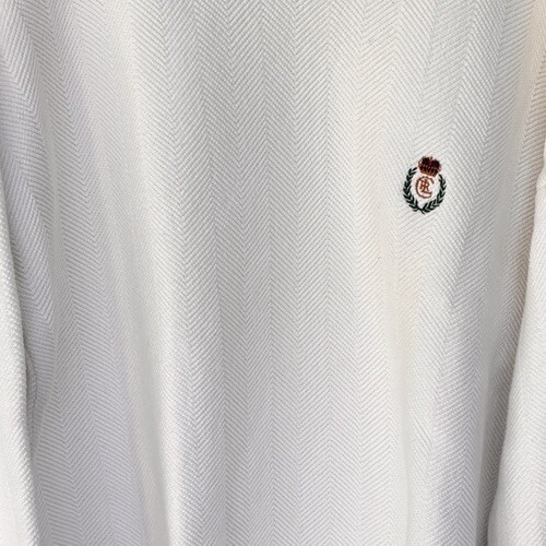 Classic Chaps Ralph Lauren crewneck sweater in a timeless cream / off-white tone featuring a subtle herringbone textured knit and embroidered crest logo at the chest. A versatile, easy-to-style piece with a relaxed fit and classic preppy aesthetic.