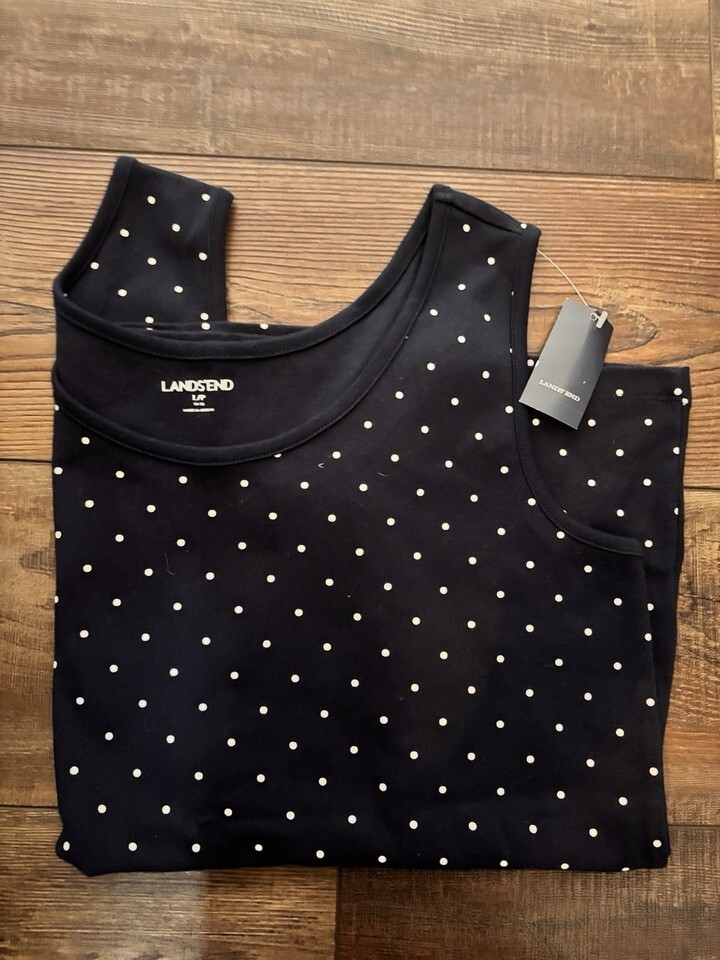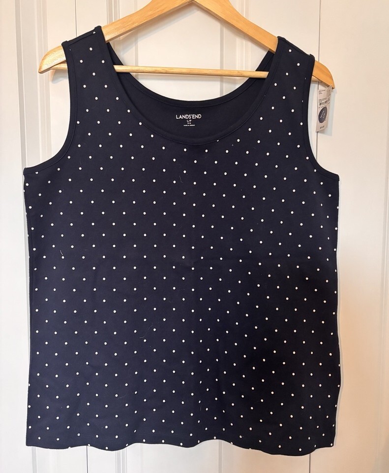 NWT Lands End Top Womens Blue Polka Dot Tank Top Scoop Neck Sleeveless Lg Petite